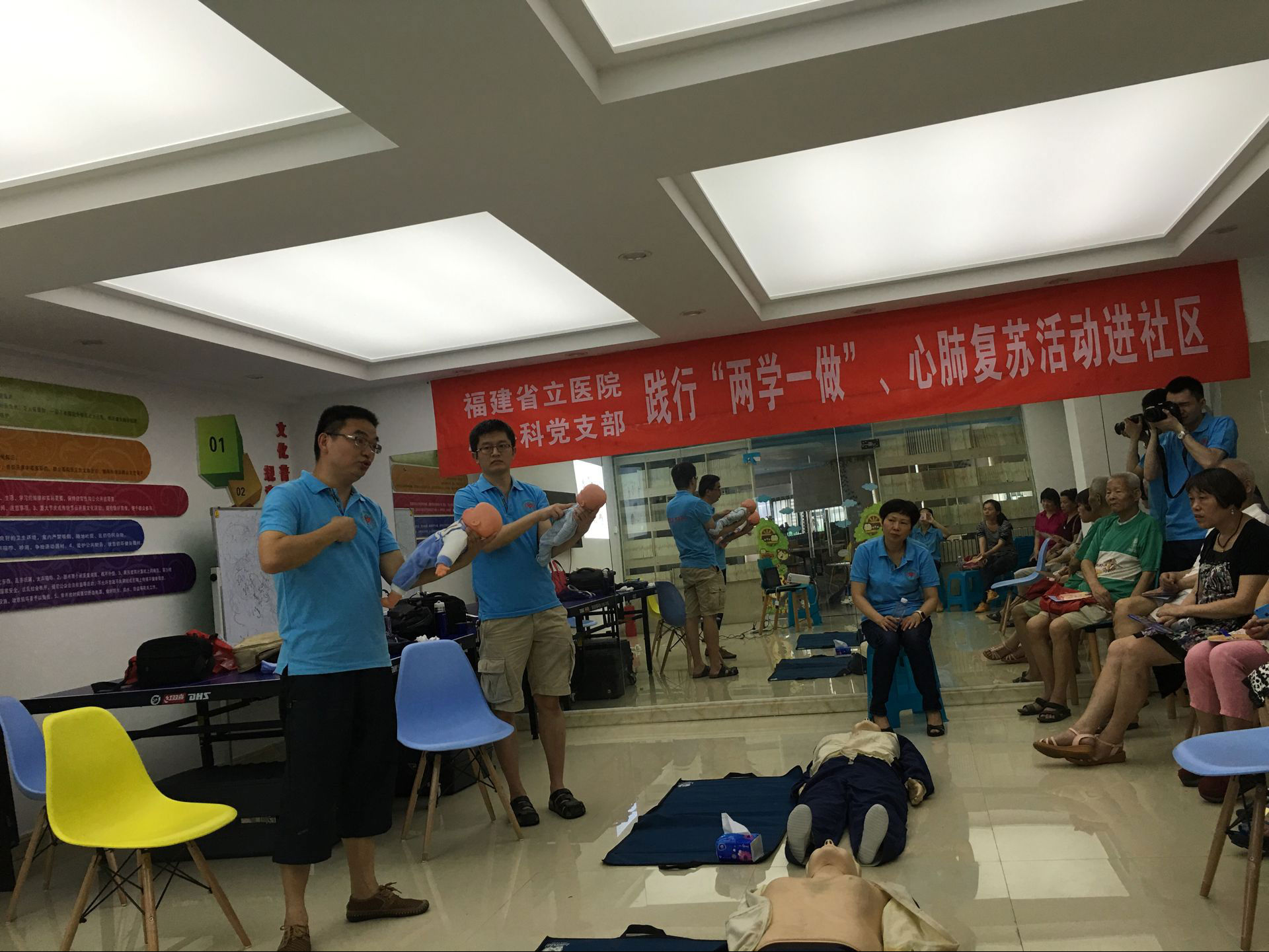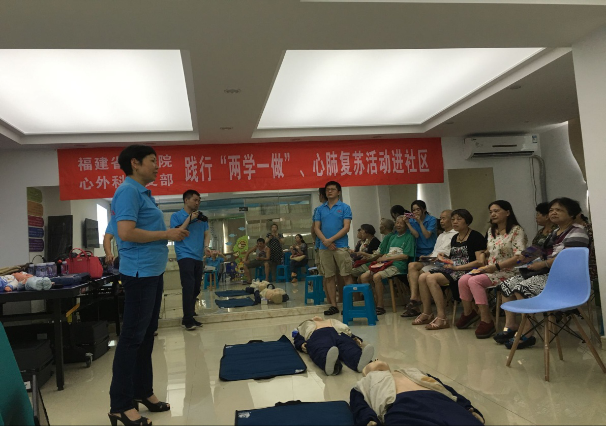 我院共开展了10多次心肺复苏培训公益活动。先后走进了福州大学化学学院、福州大学阳光学院、省统计局、冠林电子有限公司、金铭培训学校以及厦门、武夷山市等地,取得了良好的社会效益。