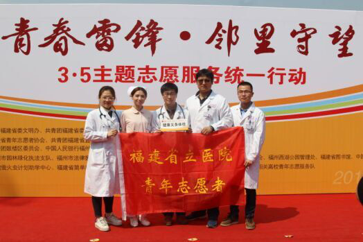 本报讯 今年3月5日是第53个学雷锋纪念日,第16个中国青年志愿者服务日,为弘扬“奉献、友爱、互助、进步”志愿服务精神,我院积极响应省委文明办、团省委“青春雷锋·邻里守望”主题志愿服务统一行动,组织青年志愿者和各级青年文明号来到福州西湖晨曦广场开展义诊咨询活动。来自心血管内科、内分泌科、创伤外科、护理以及药学等专业的志愿者们为现场近200名群众解疑答惑,免费体检。