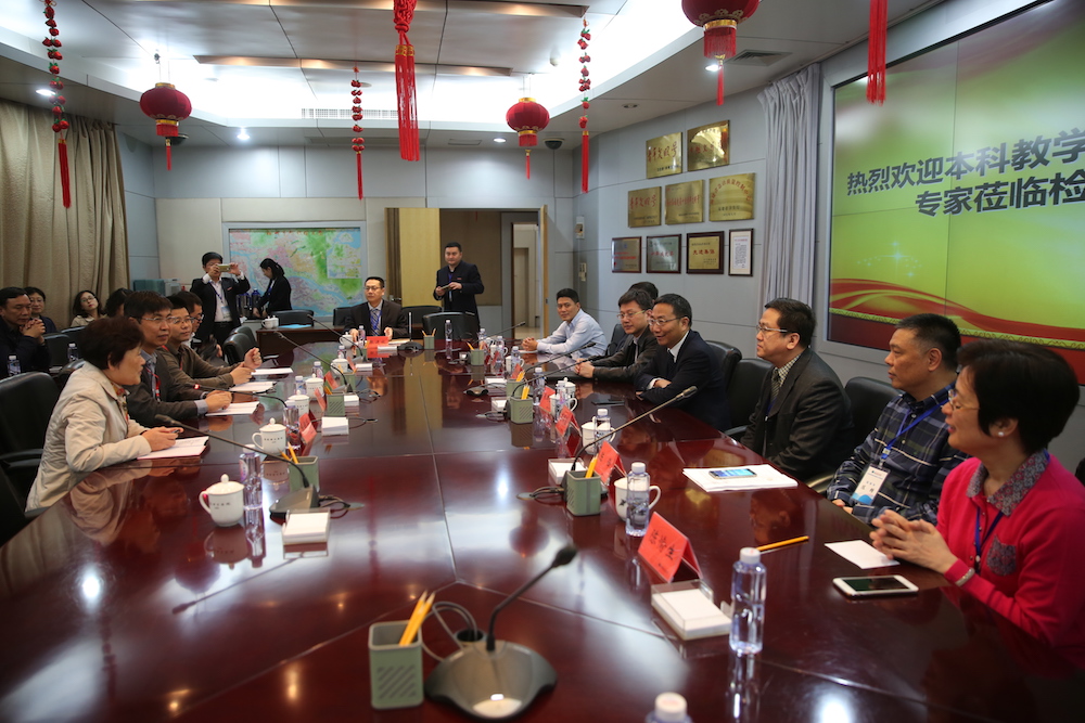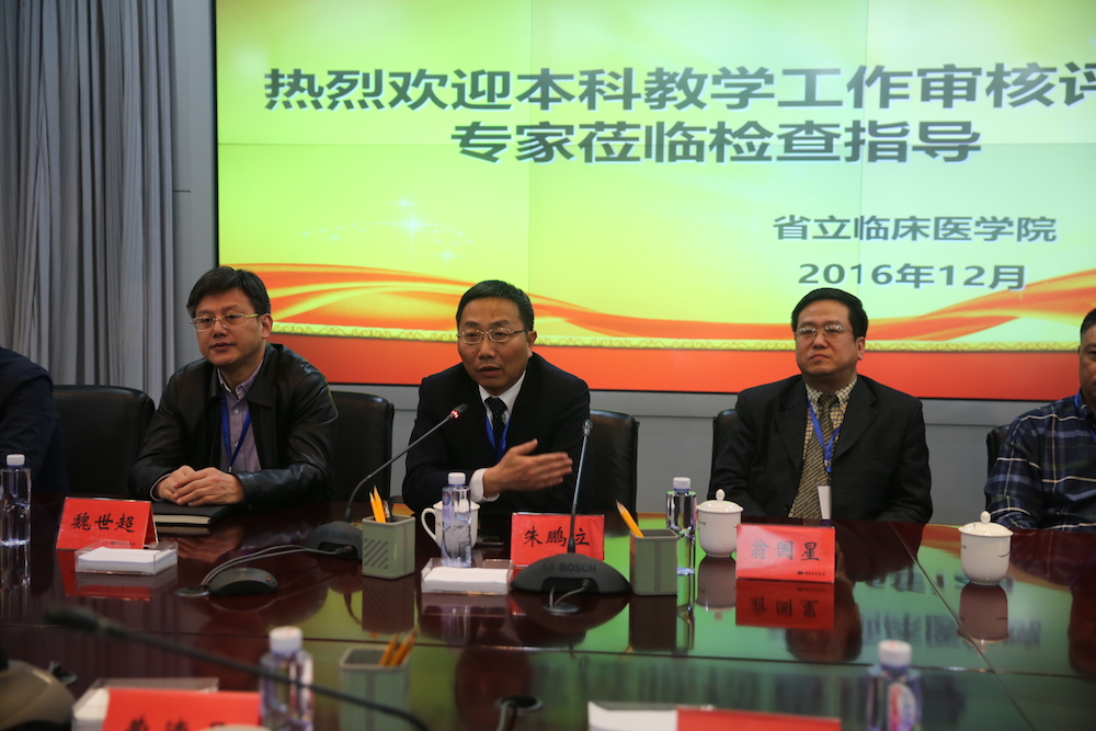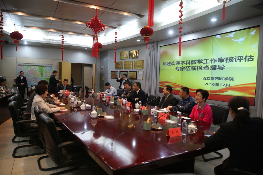2016年12月19-22日,教育部本科教学工作审核评估专家组莅临福建医科大学开展审核评估。20日下午,专家组一行在学校领导及相关部门负责人陪同下,来到省立临床医学院,听取学院工作汇报,随后参加教师和学生座谈,并参观了科室教学查房活动和临床综合技能培训中心等教学设施。我院院长、党委书记朱鹏立教授、党委副书记魏世超教授、副院长翁国星教授、副院长陈锋教授、副院长游振辉教授、副院长陈愉生教授陪同此次评估工作。