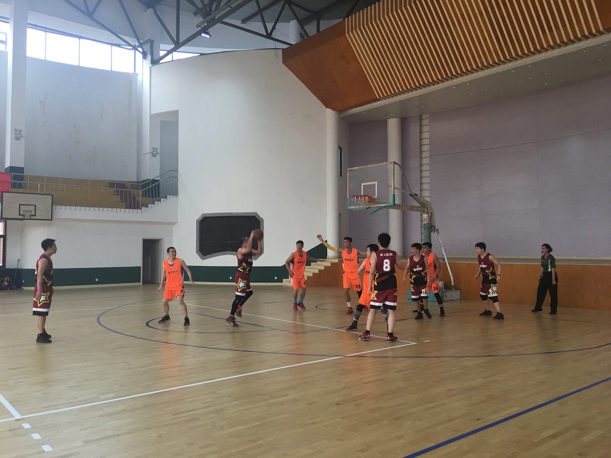 4月9日下午与福州一中的小组赛精彩纷呈,比赛一开始,双方就展开了激烈的角逐,比分交替上升,虽然一中队队员有身高优势,我院篮球队队员也毫不示弱,在离比赛结束还有三秒时,骨二科的肖毓华一个关键的三分球将比赛带入第一个加时赛,全场立刻沸腾起来,朱鹏立院长亲临现场为球队加油,极大地鼓舞了士气,比赛高潮迭起,经历了二个加时赛,院篮球队以小组第二的名次出线。