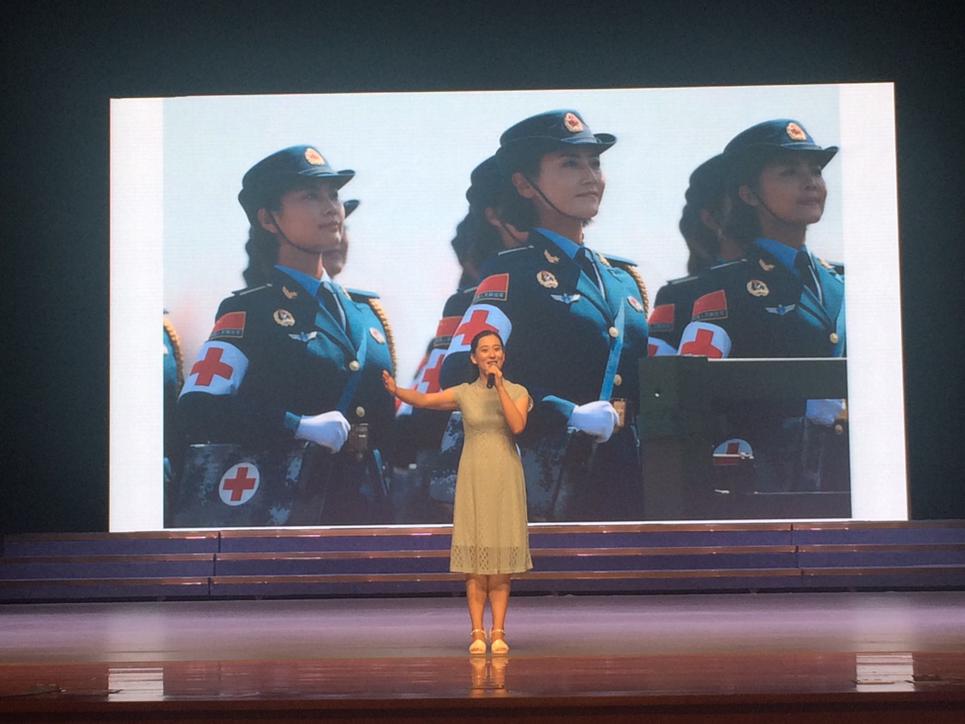 急救中心代表队以原创作品《仰望一轮骄阳》获得了在场评委和听众的认可。这是一篇以时间为主线的朗诵稿,开篇以“我”亲眼所见的骄阳为切入点,倒叙引出九十六年前的风霜雨雪,从建党到建团,从建团到建军,运用简明凝练的语言,概述了从长征、抗日战争、解放战争到改革开放,再到社会主义和谐社会,终于走到了今天的兴盛。篇末,焦点拉回现实,再次以“我”的视角展开,以那一缕光辉为启发,得出“世界在你们手中,该行动了”的呐喊,实现了前后呼应。