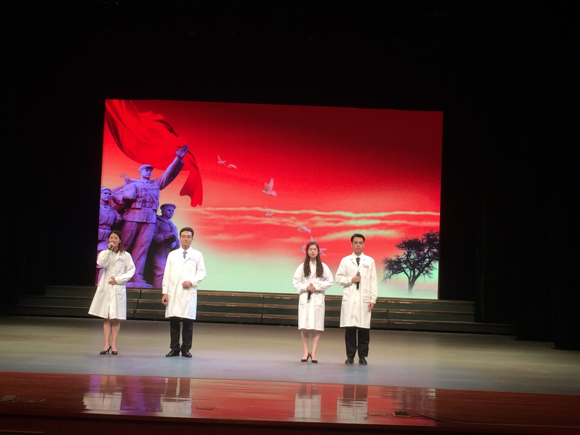 重症医学二科何淑芳以一首《医者仁心》征服了所有的听众和评委。《医者仁心》以抗日战争时期医务战士王瑛奶奶为原型,作品跟随奶奶一起追忆了共产党驻军亲民爱民的温馨画面;战场上受伤战士因失去双腿痛苦牺牲的残酷画面;以及抗战医务兵把手术刀当作手中枪,冒着炮火,用别样的方式在战场上救死扶伤的英勇画面……旨在鼓励大家牢记历史,缅怀先烈,感恩美好生活的来之不易。主评委评价何淑芳的诵读深情、着装得体、举止端庄、整体节奏把握很好堪称完美。