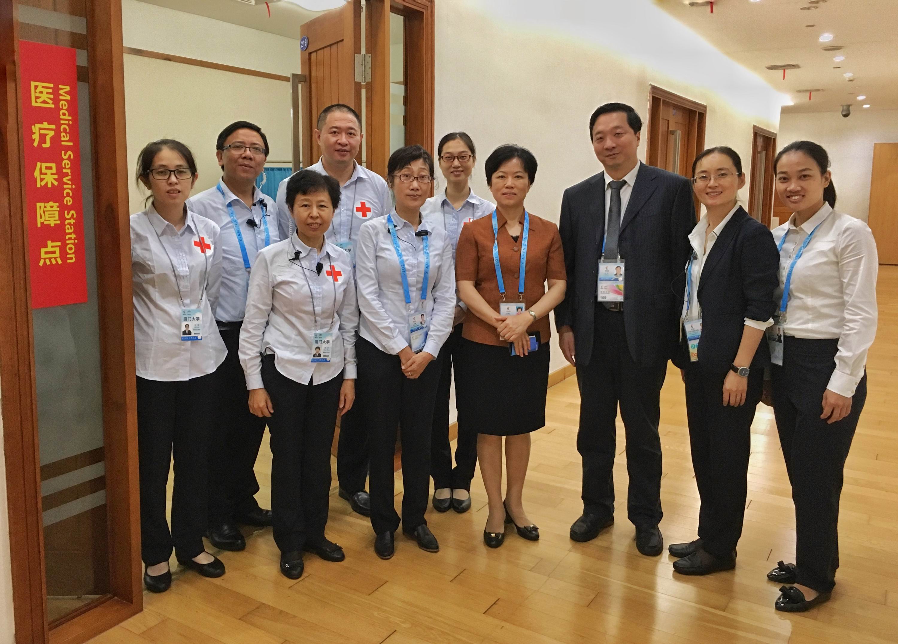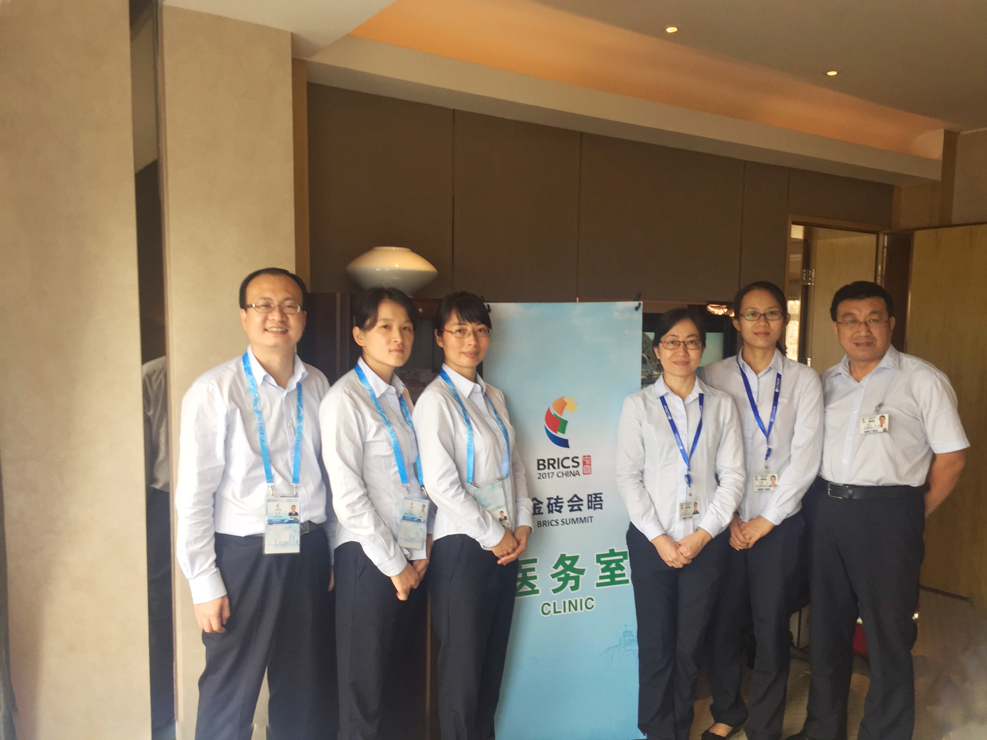 针对此次保健任务的特殊要求,我院组建了一支政治上过硬、业务上精湛的医疗保障队伍,与兄弟医院专家组成了主要场所医疗组和酒店驻地医疗组,负责主要领导和俄罗斯、印度、南非等9个国家代表团及新闻媒体中心的医疗保障。医疗组成员多次赴厦门现场进行综合模拟演练,并参与厦门国际会议中心会晤主会场、厦门大学、筼筜书院、闽南大戏院等主要会议活动开展期间的医疗安全保障工作,受到广泛好评。