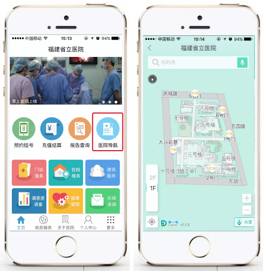 福建省立医院“智慧医院”再升级,开启手机导航模式,全面实现院内导航功能。您只需在智能手机上使用福建省立医院APP或官方微信平台上的医院导航功能,即可以享受院内掌上导航,定位精准到3步以内。并且,导航过程不会耗费手机流量。