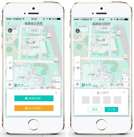 ☑ 通过院内位置共享功能,亲友与患者之间可实时分享院内位置,并一键导航至对方身边;