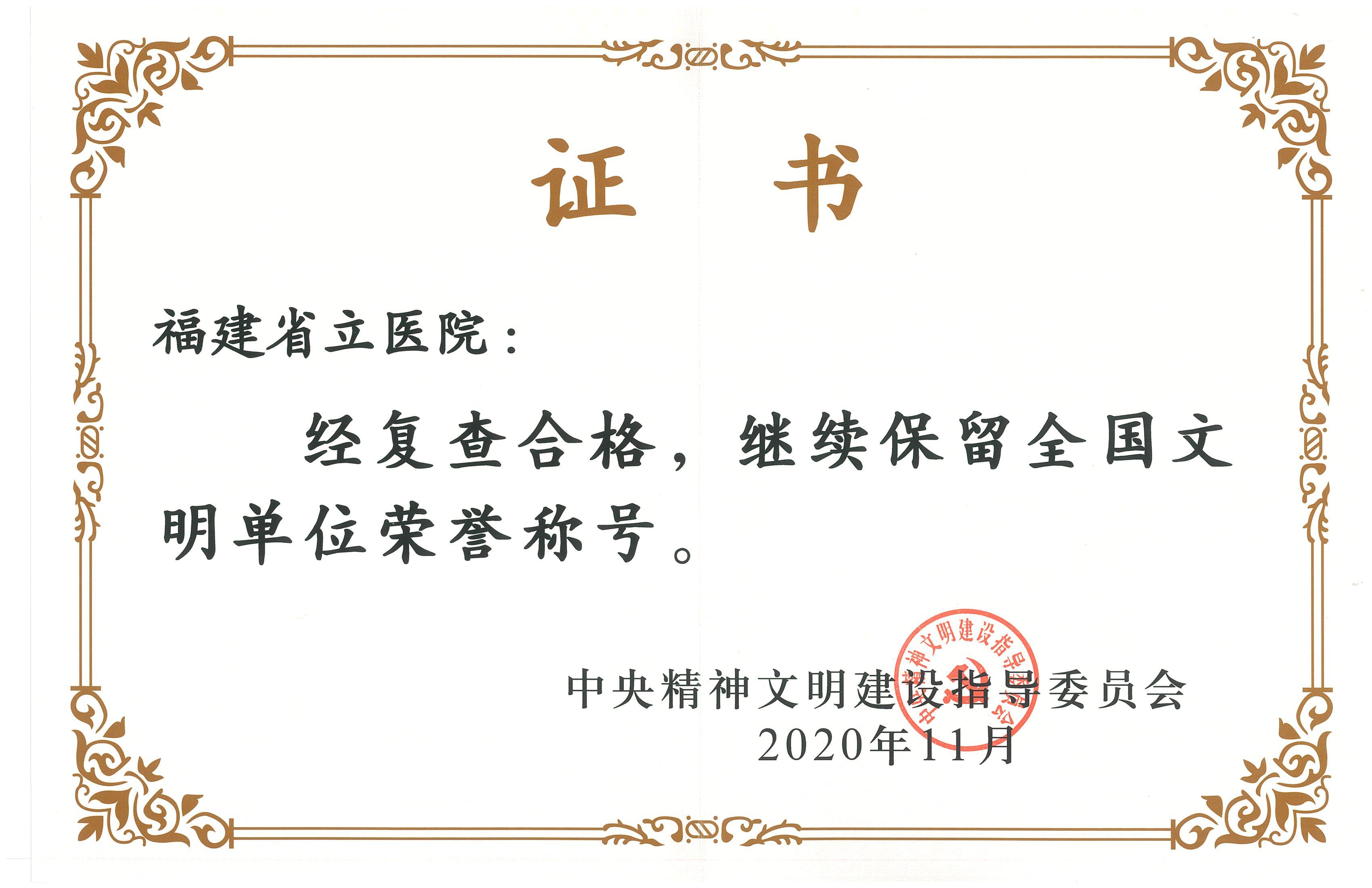 福建省立医院蝉联全国文明单位称号