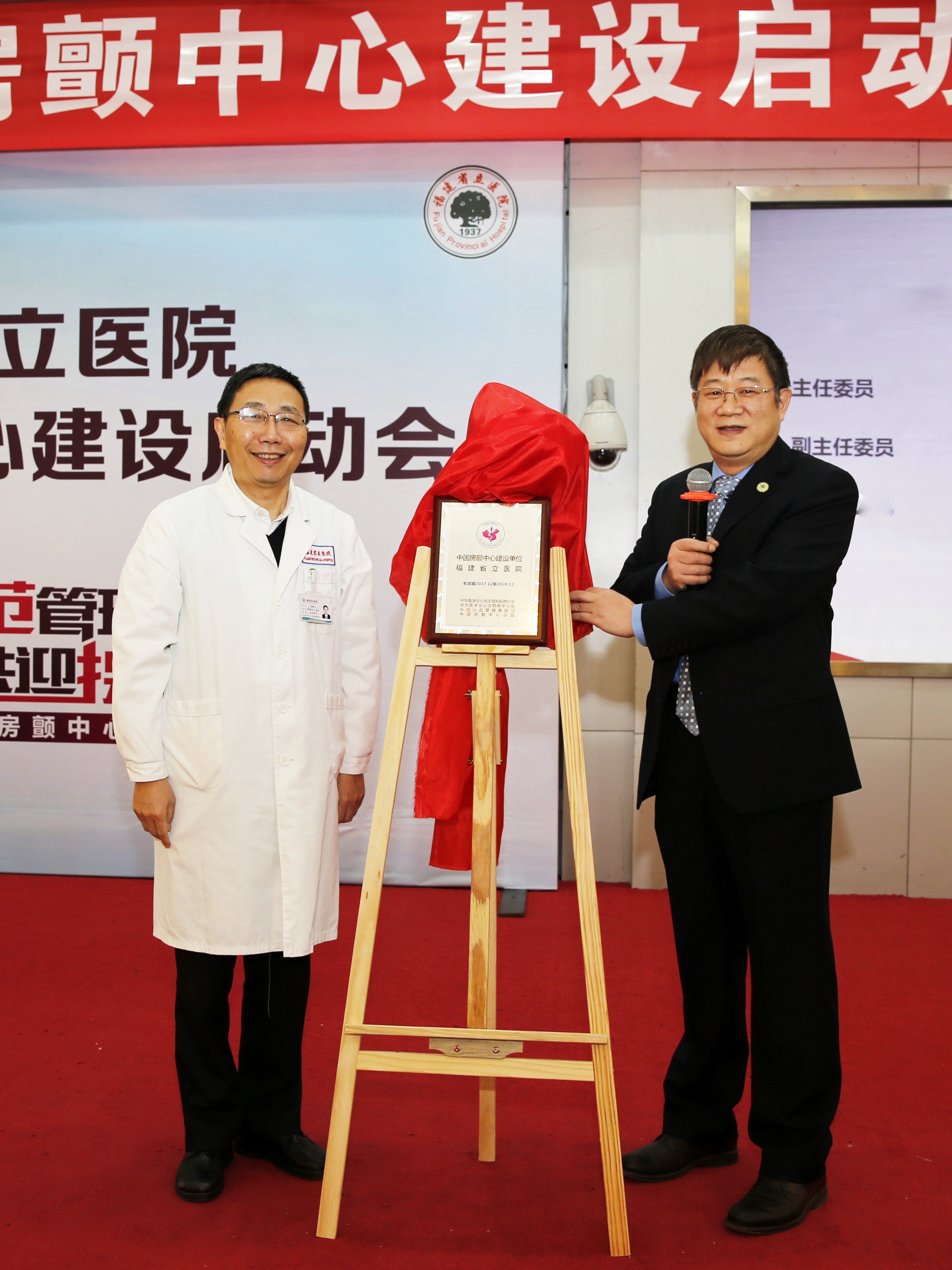 中国房颤中心建设项目由中国心血管健康联盟、中华医学会心电生理和起搏分会、中华医学会心血管病学分会、中国医师协会心血管内科医师分会、中国医师协会心律学专业委员会共同发起。在2017年12月9日举行的2017心房颤动高峰论坛上,首批中国房颤中心建设单位获授牌,我院名列其中。