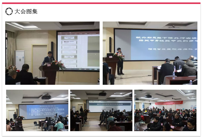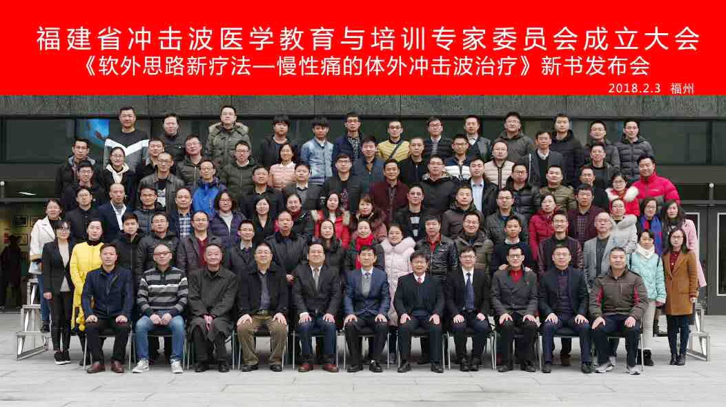 2月3日,福建省冲击波医学教育与培训专家委员会成立大会暨《软外思路新疗法-慢性痛的体外冲击波治疗》新书发布会在我院召开。国际冲击波医学候任主任委员、中国冲击波医学委员会主任委员、中国武警总医院邢更彦教授,我院翁国星副院长,浙江省人民医院疼痛科李顺教授莅临大会。省内疼痛科、康复科、骨科、软伤科、理疗科等诸多学科专家参会。