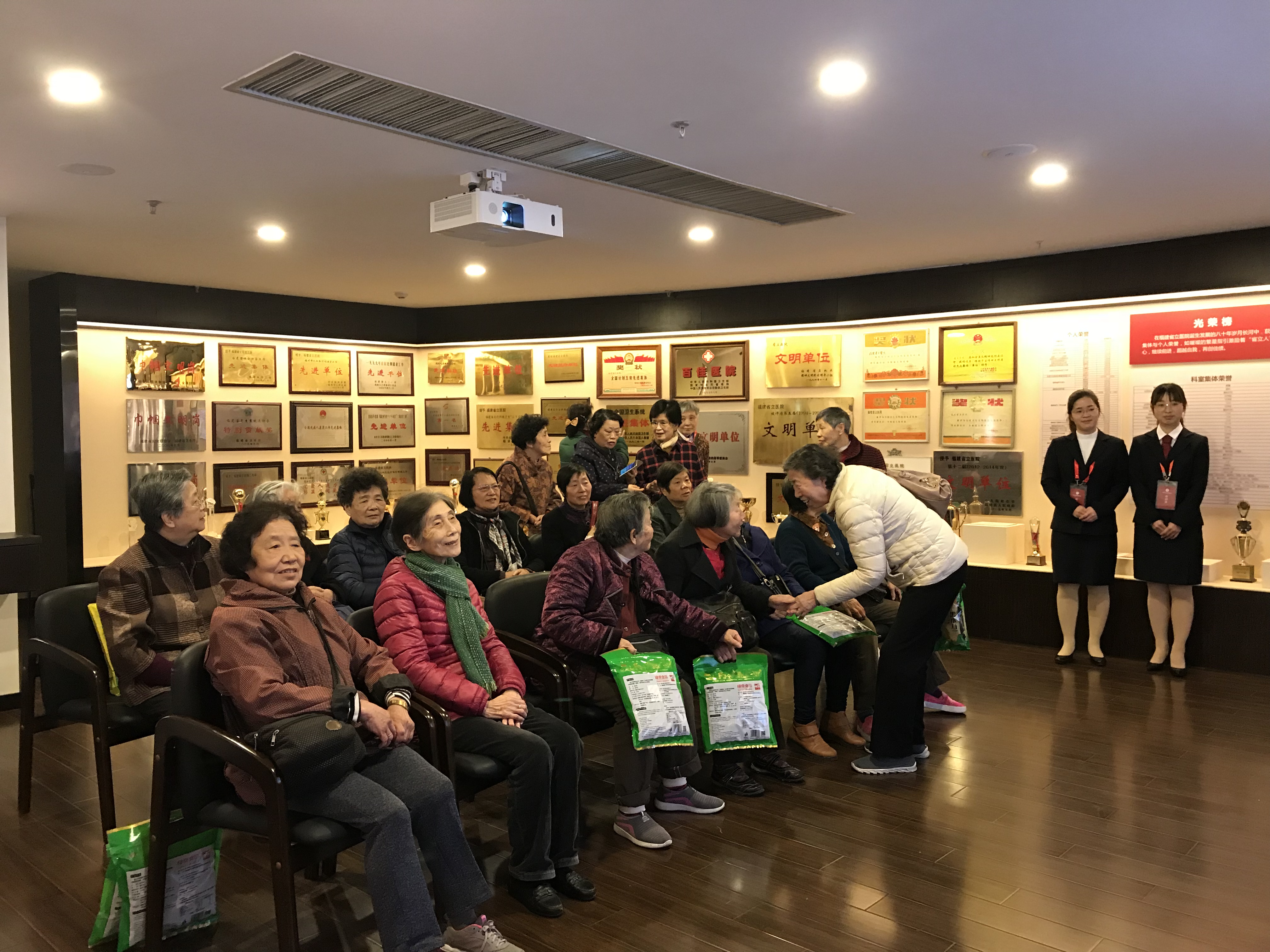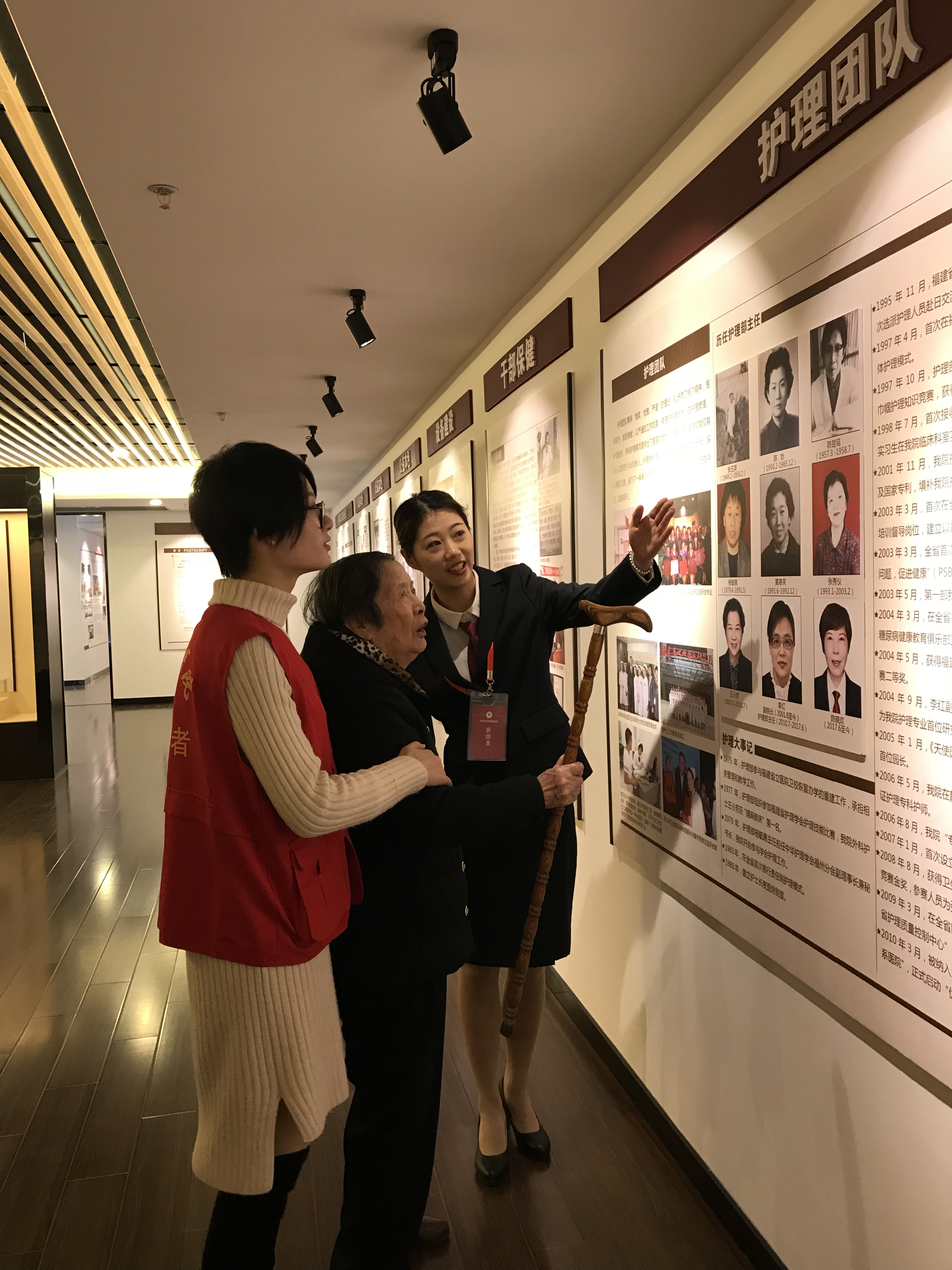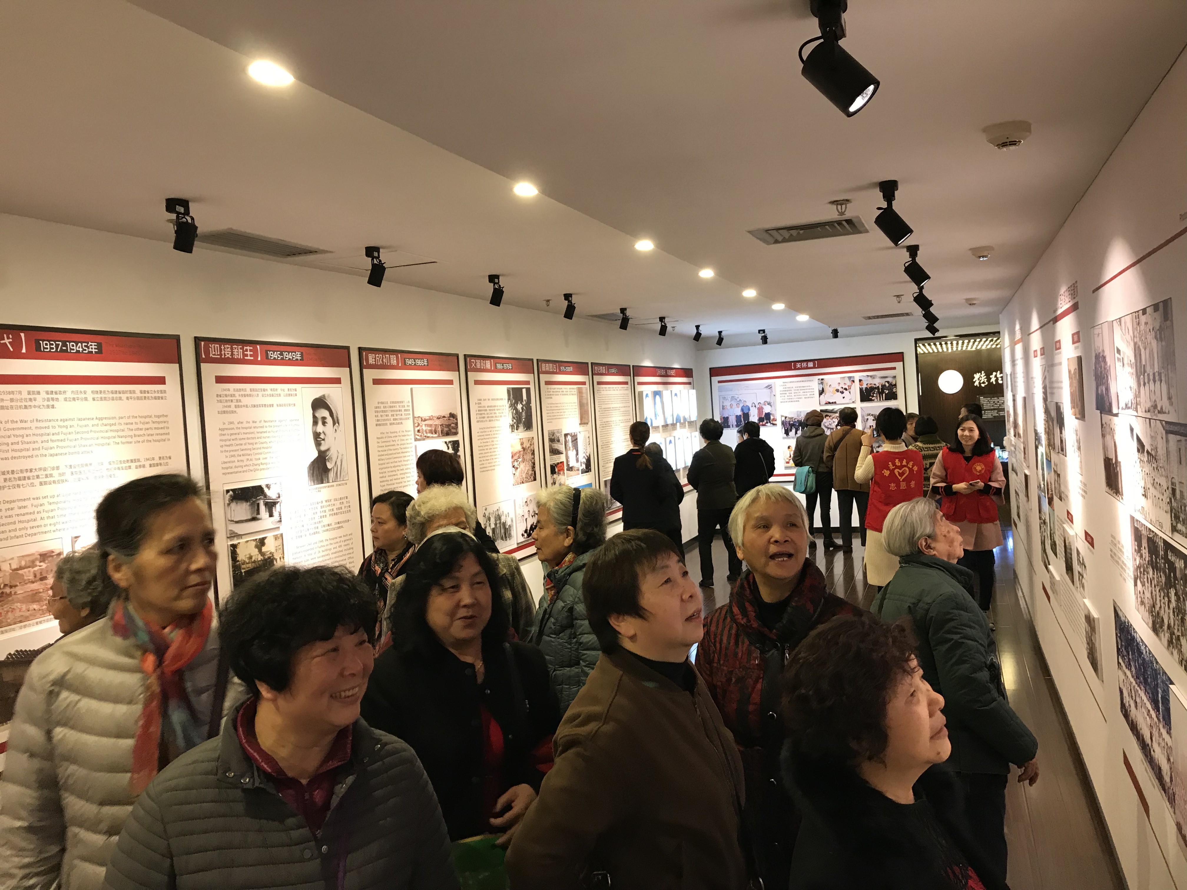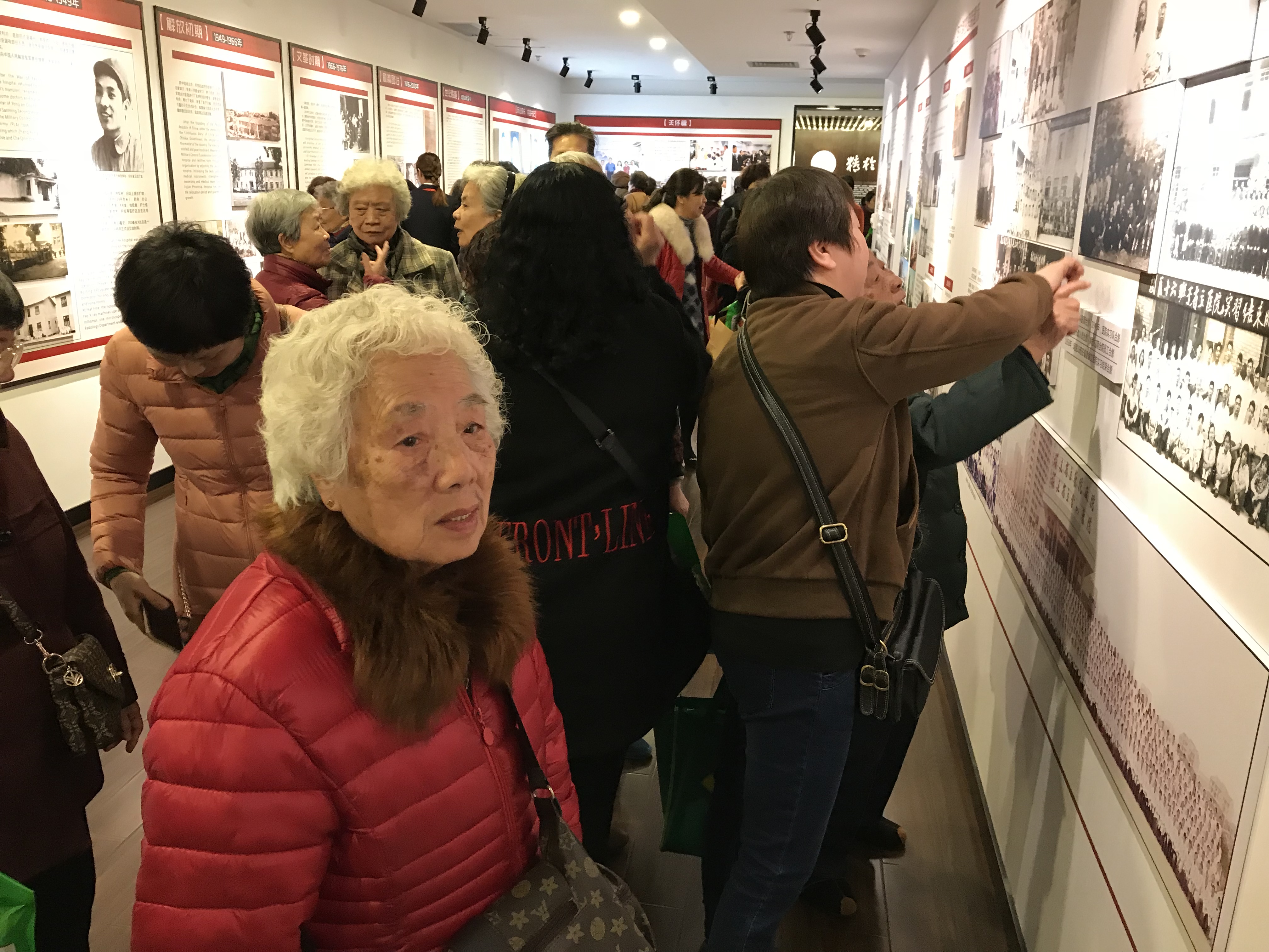 3月8日和9日下午,老干处组织了622位离退休女职工召开了座谈会,会后还组织老前辈参观了医院的院史馆。她们认真地听着讲解员的讲解,一起回顾着医院80年的光辉历史,她们十分激动。在院史馆里,她们最感兴趣的是那些珍贵的老照片,因为从老照片上可以看到她们多年未见老朋友,回想起她们的往事种种。她们一起合影留恋,有许多老同志还在留言本上留下宝贵的意见,表达自己的激动心情。