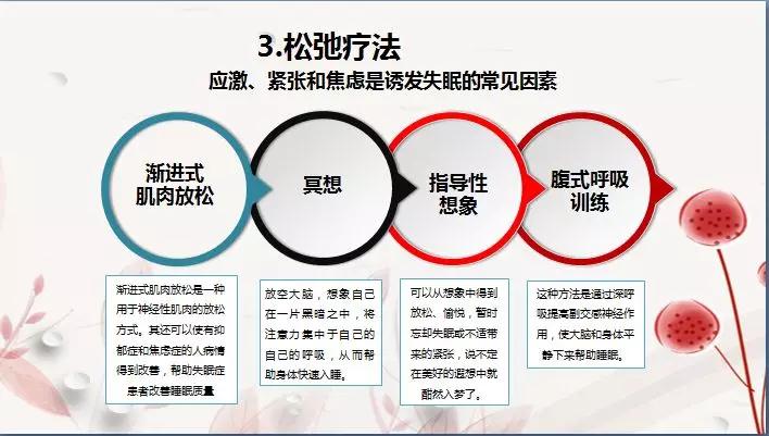 为此,魏世超教授提醒医护人员也应关注自身的睡眠问题。他还推荐了一套松弛疗法,对于因焦虑、紧张导致的失眠人群同样适用: