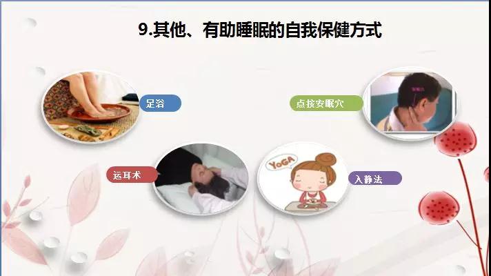 2. 睡前数小时(一般下午4点以后)避免使用兴奋性物质,如咖啡,浓茶或吸烟等;