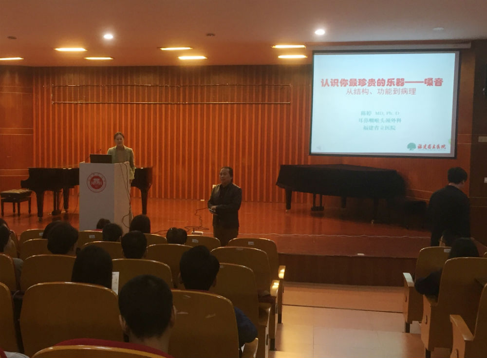 4月16日是第17个世界嗓音日,我院耳鼻咽喉科陈婷副主任医师走进福建师范大学音乐学院,为师生作“认识你最珍贵的乐器——嗓音:从结构、功能、病理到保健”专题讲座。