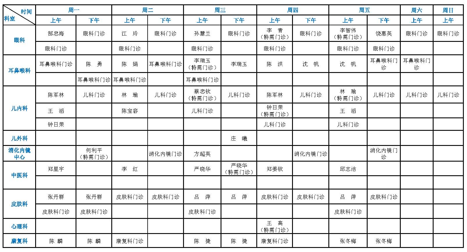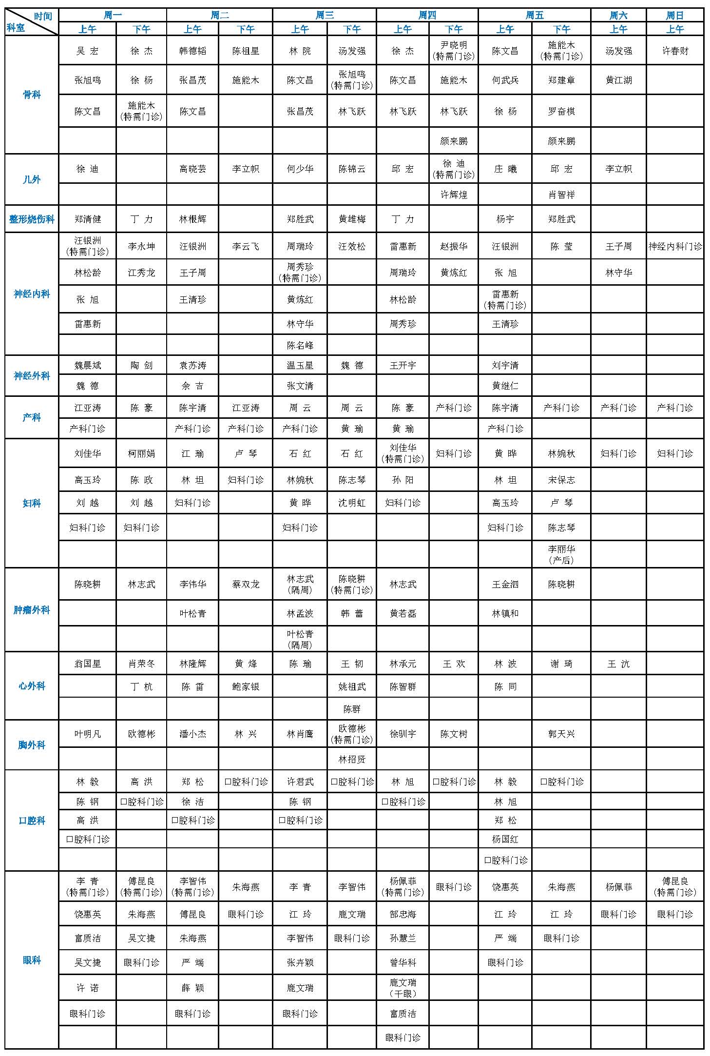 福建省立医院专家门诊一览表