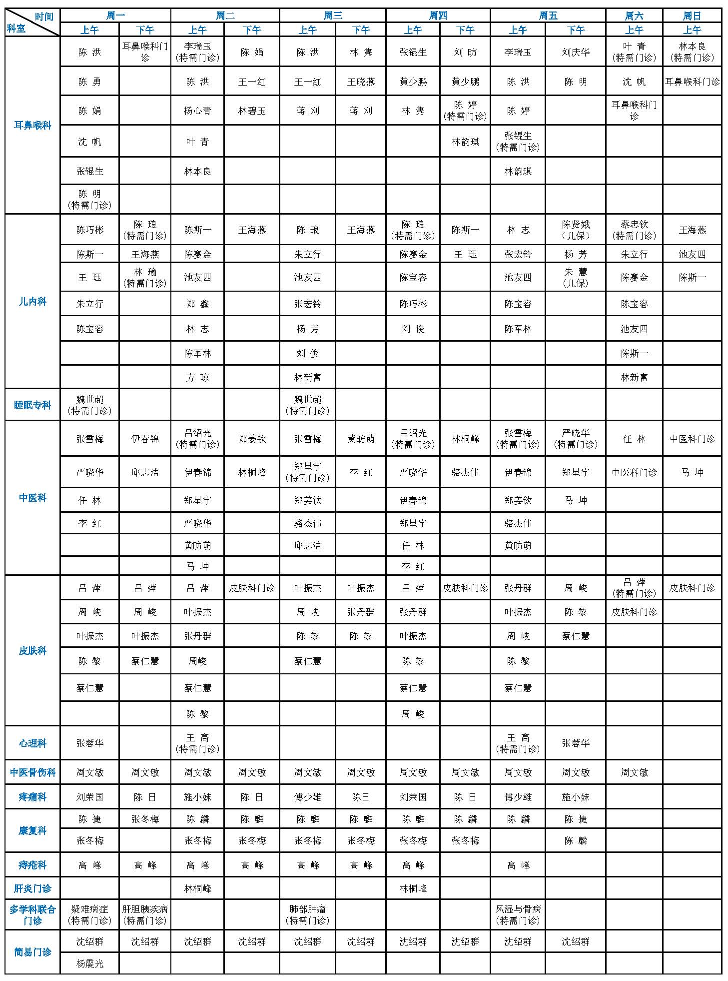 【温馨提示】点击可查看大图!(注:专家门诊如有临时变动,以院方当日公布为准!)