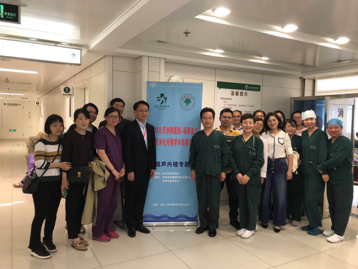 4月20日,第二届北京协和医院—福建省立医院消化内镜合作共建学术会议在北京协和医院召开。我院消化内镜中心梁纬主任带领14人的团队参加会议,邓万银副主任医师作手术演示。浙江大学附属第一医院许国强副院长,北京协和医院消化内科吴晰副教授、冯云路博士分别就《环形超声扫描操作技巧》《纵轴超声扫描技巧》《小探头操作技巧》作主题演讲。