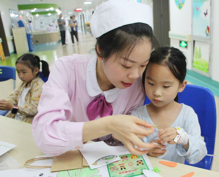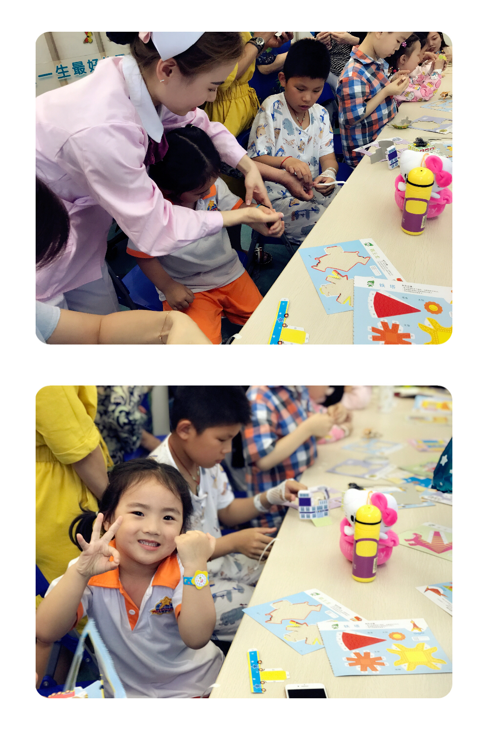 ▲医护人员为病房患儿送去六一礼物,同时邀请小宝贝们进行手工比赛