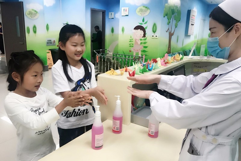 一群美丽的护士姐姐们精心编排了洗手舞,在欢快的旋律下,带领小朋友一起学会了“六步洗手法”,鼓励孩子们勤洗手,防止病从口入。