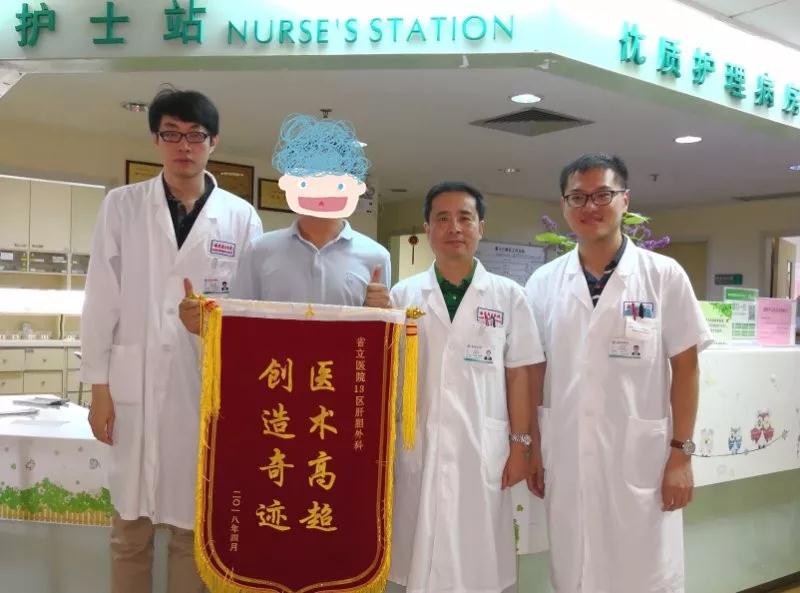 前些天,来复诊的王奶奶在儿子刘先生的陪同下,给肝胆外科的医生们送来了一面“医术高超、创造奇迹”的锦旗。