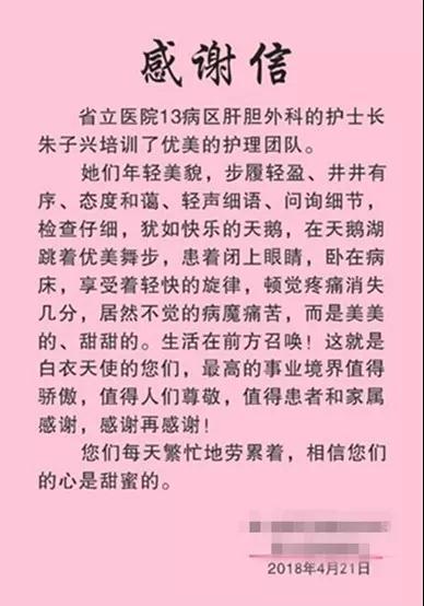 老太太很坦然地说:“我也住过几次医院,了解医生的不易。不论平时还是周末,他们在医院总是忙忙碌碌,为了病人的健康无私奉献。医学是很高深的学问,即使手术不成功,我也不埋怨,我知道他们努力了,让他们放心去做。”