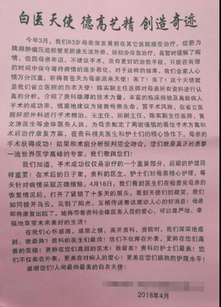 ▲ 患者家属写的感谢信