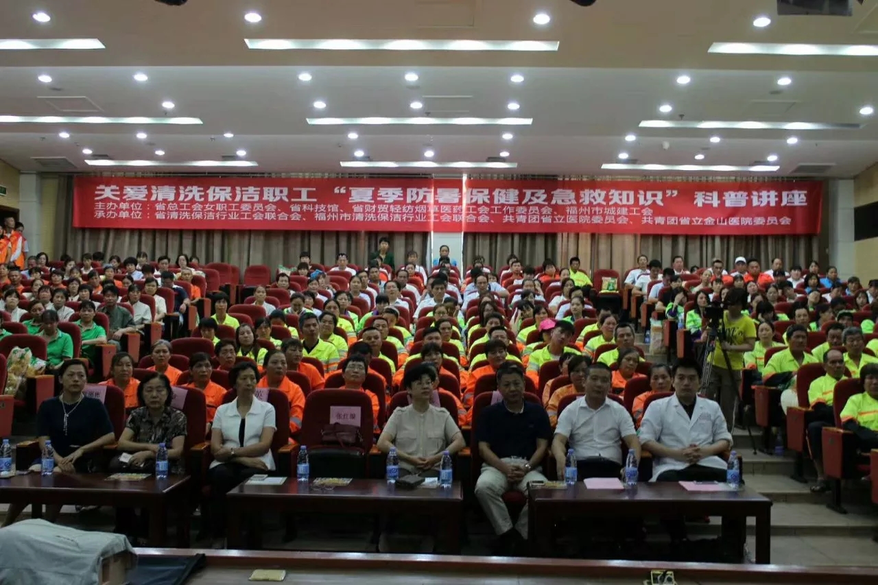 2018年6月15日,共青团福建省立医院委员会、共青团福建省立金山医院委员会、福建省急救中心团支部参加了在福建省科技馆举办的关爱清洗保洁职工“夏季防暑保健及急救知识”科普讲座、健康急救实操演练、高温慰问等系列活动。