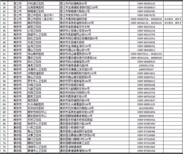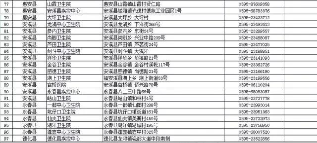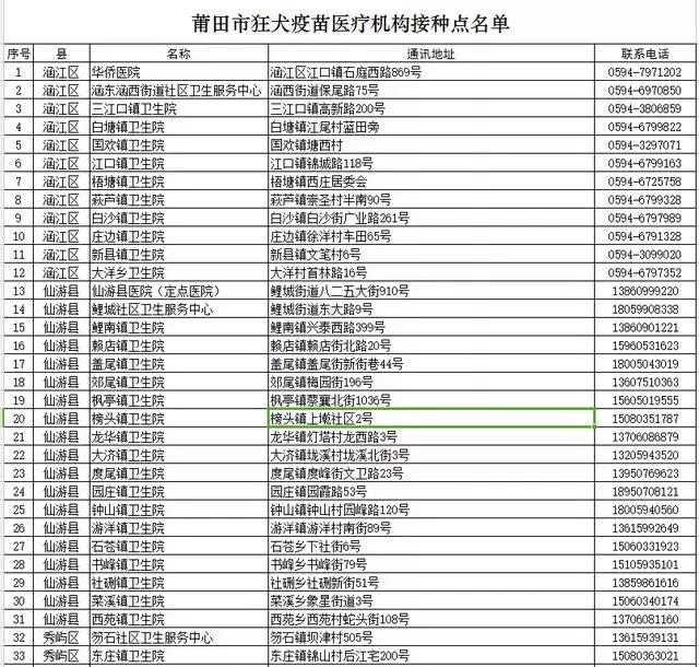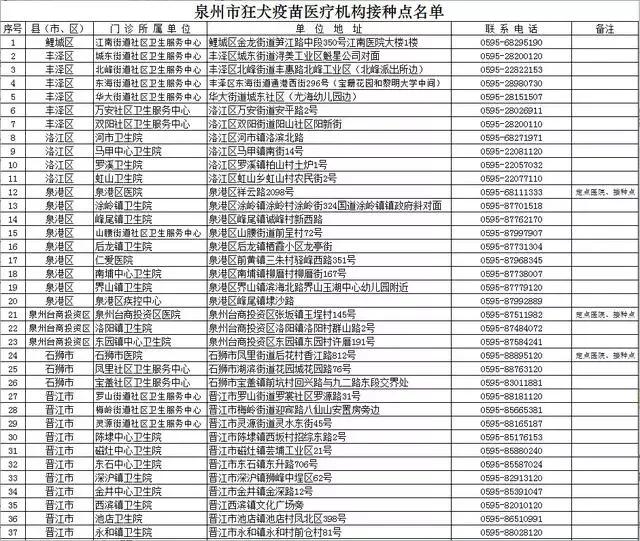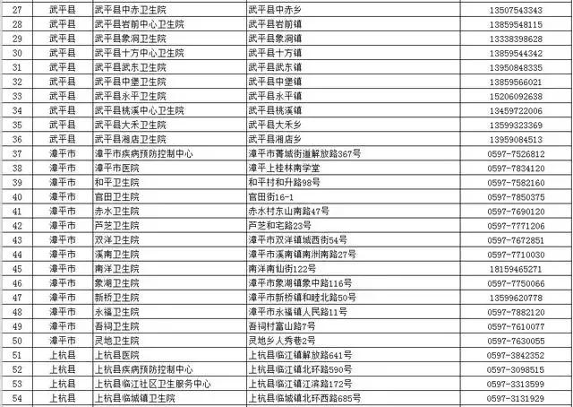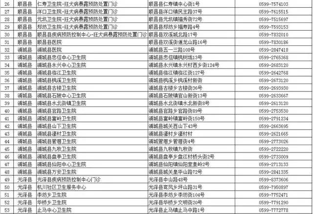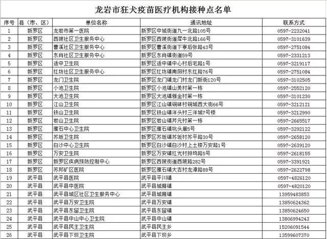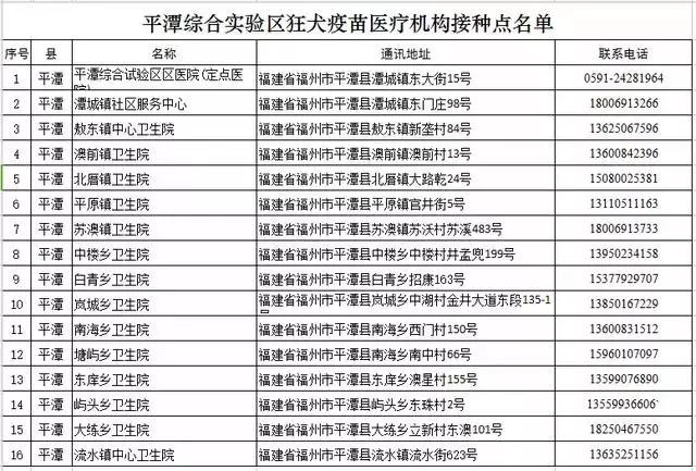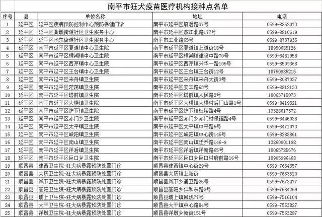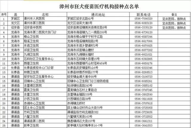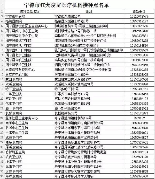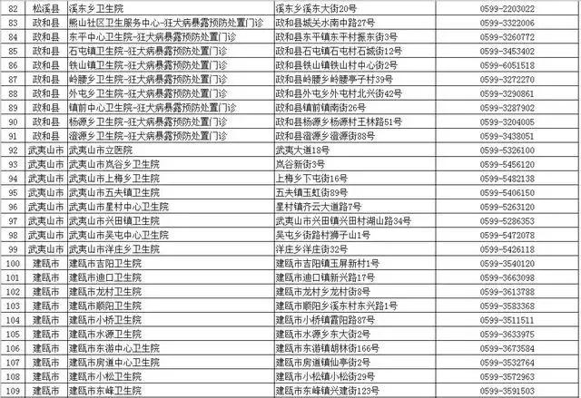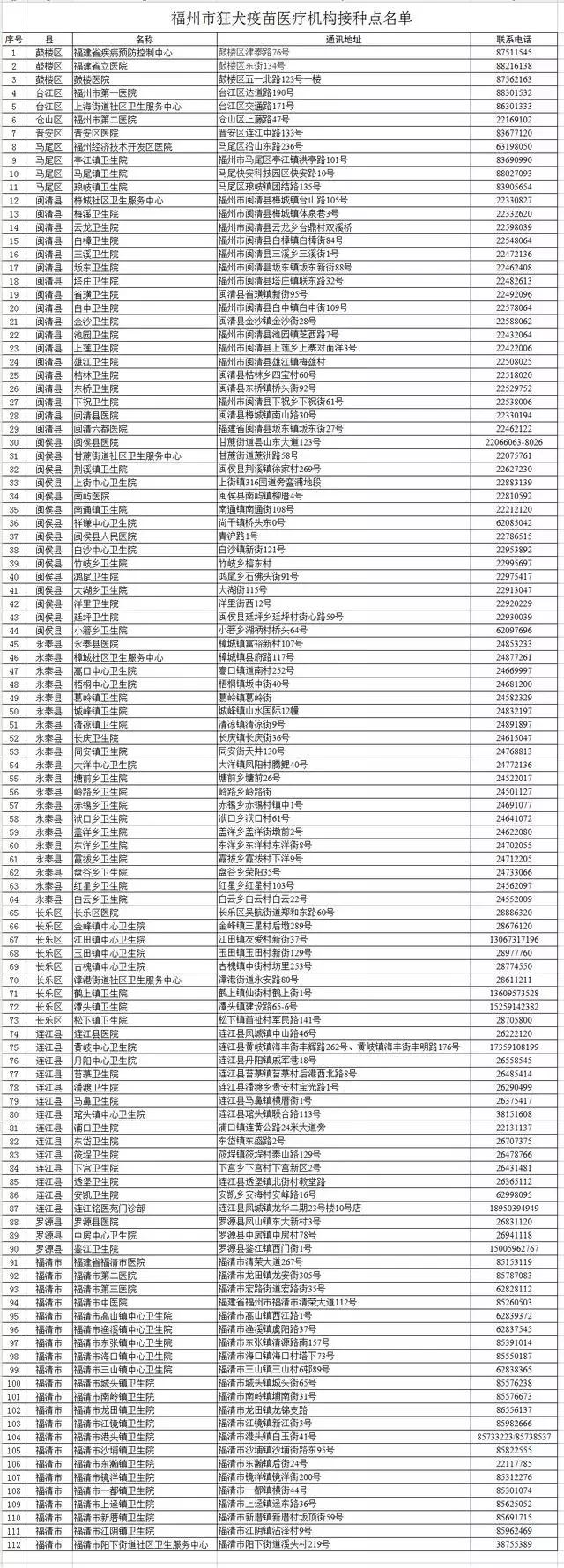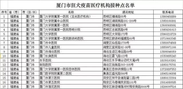 福建省卫计委公布《福建省狂犬疫苗医疗机构接种点名单》