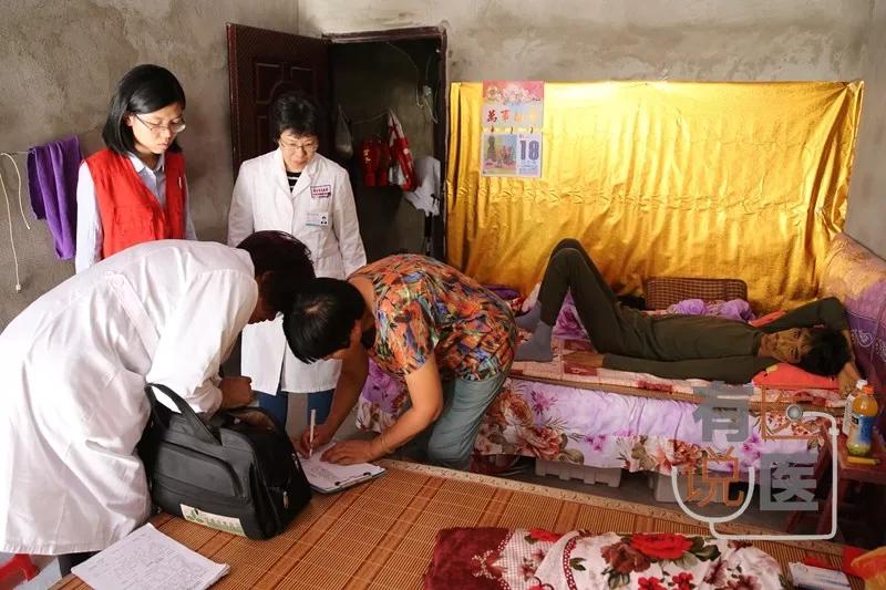 抱着来家中走访的医生,患者郑依姆激动得失声痛哭
