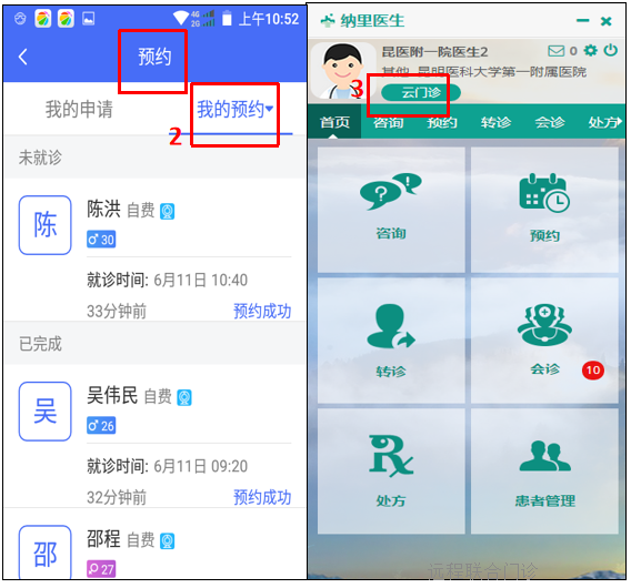 2.专家在APP上[预约]-[我的预约]中可查看未就诊的云门诊预约。