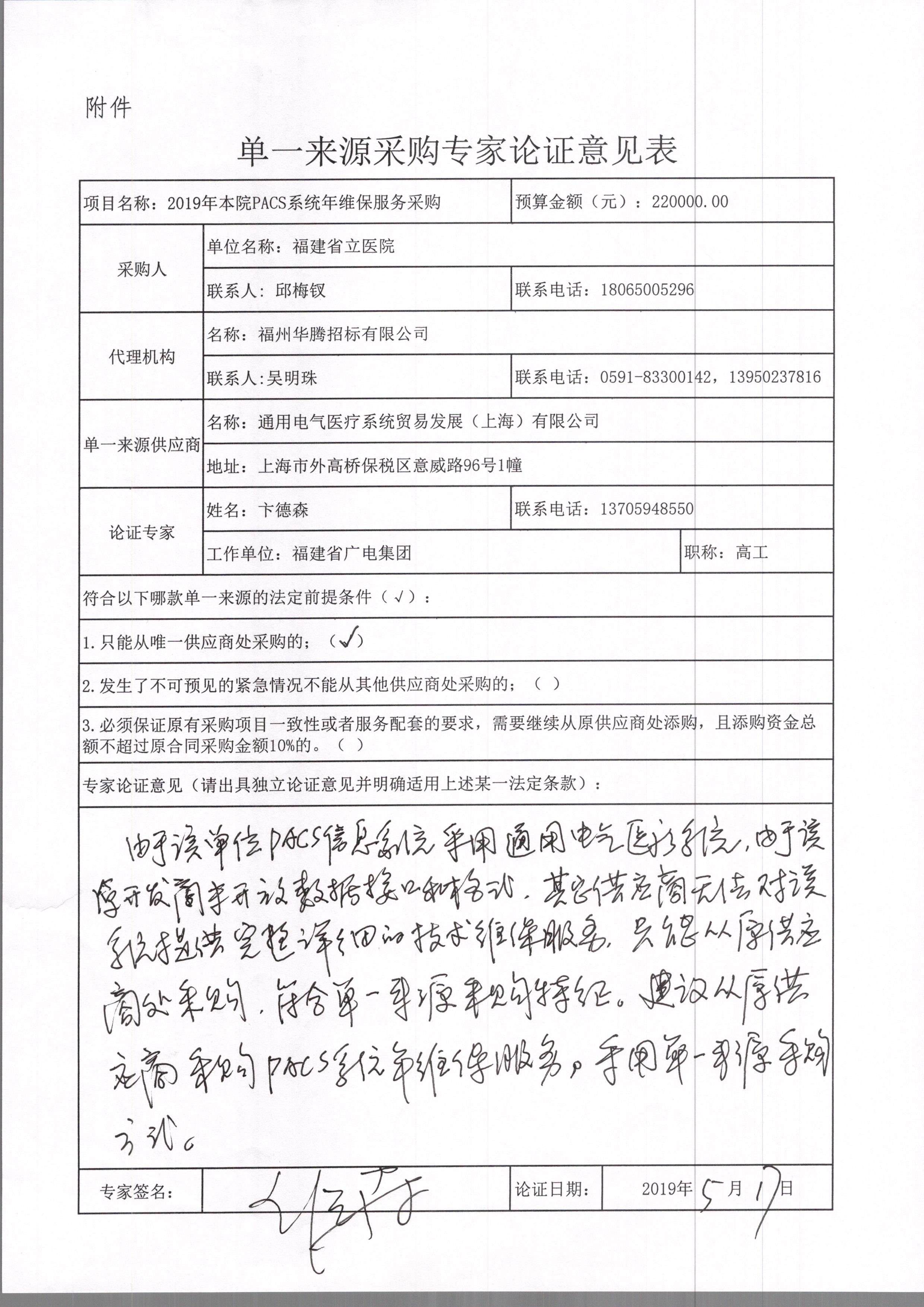 1 | 2019年本院PACS系统年维保服务采购 | 1年 | 220000.00 |