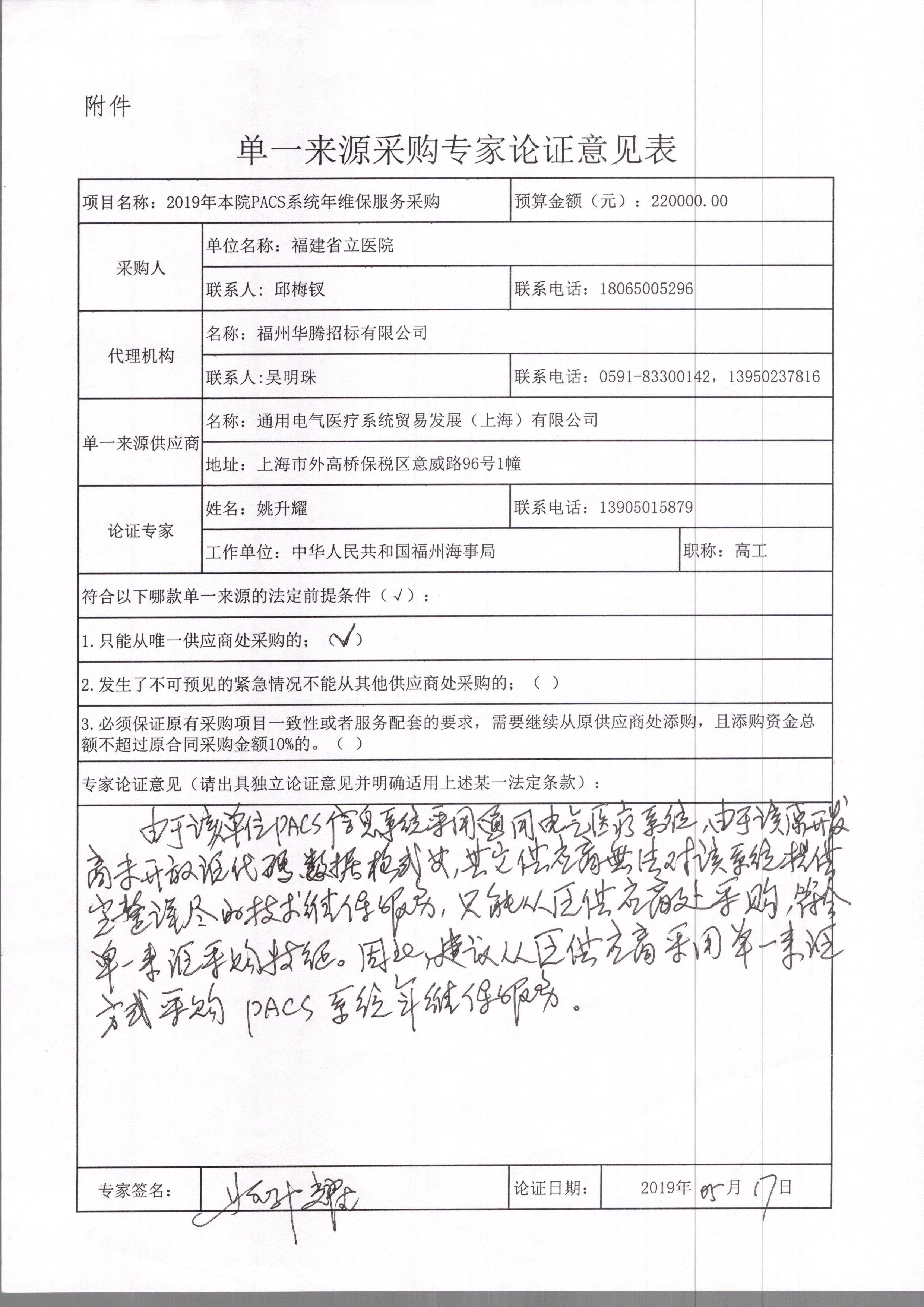 福建省立医院对2019年本院PACS系统年维保服务采购拟采用单一来源采购方式进行采购,现公示如下: