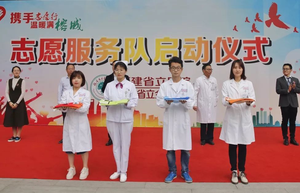 今天上午,福建省立医院、福建省立金山医院志愿服务队启动仪式在喷泉广场前举行。共青团福建省委副书记、福建省青年志愿者协会会长陈训明,福建省立医院党委书记、院长朱鹏立,福建省青年志愿服务中心主任、共青团福建省委青年志愿者工作部部长张忠亮,福建医科大学团委副书记卢征,福建省卫生职业技术学院团委书记黄曦等领导出席,医院相关职能科室负责人,团委委员及四支志愿服务队代表等100余人参加。启动仪式由福建省立医院团委书记郑富豪主持。
