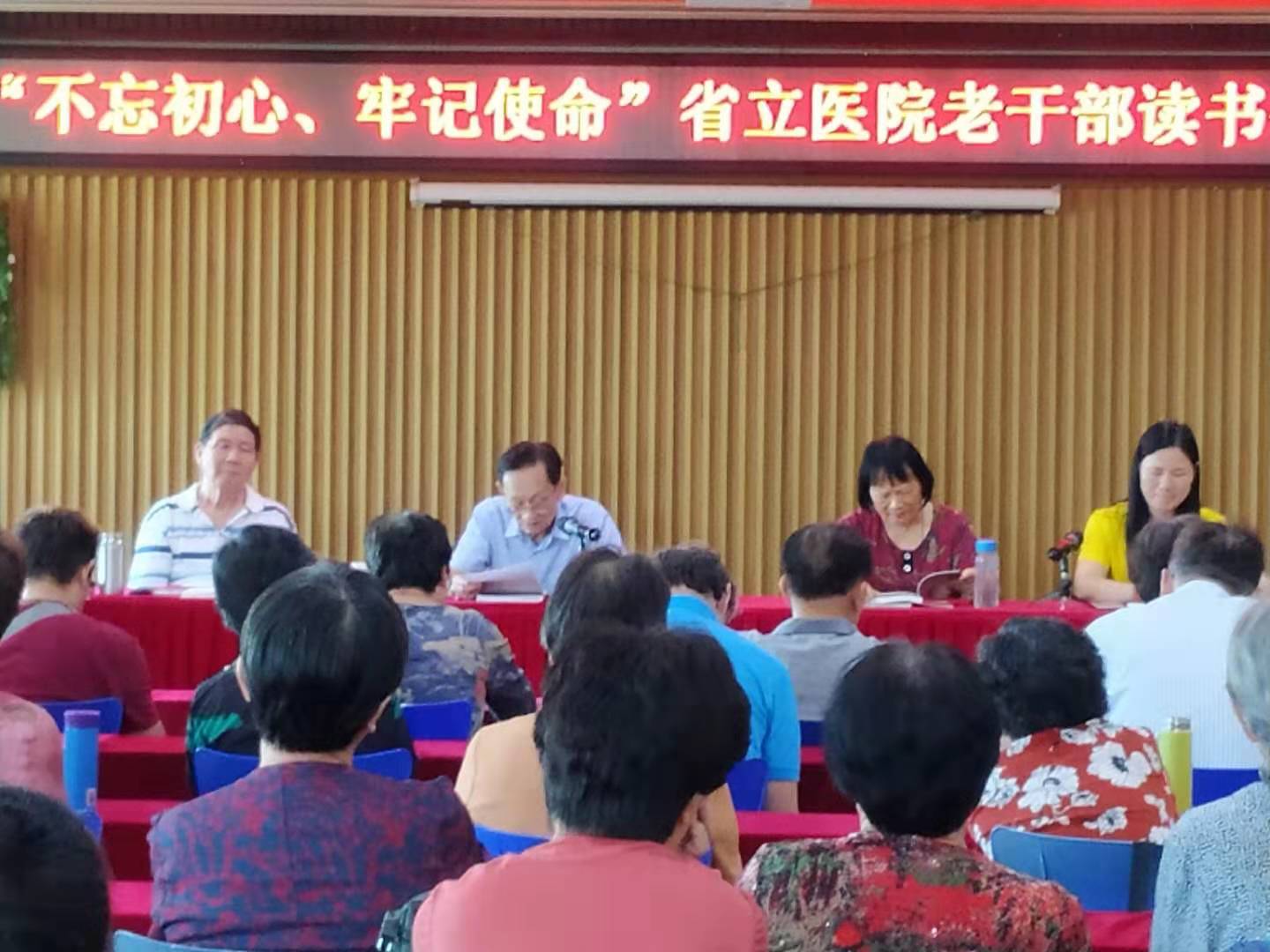 近日,省立医院老干处在福州鼓岭举办“老干部读书会”,共有40多位退休干部参加学习。读书会紧扣“不忘初心、牢记使命”主题教育,重点抓好习近平新时代中国特色社会主义思想学习教育,进一步引导退休干部牢固树立“四个意识”,坚定“四个自信”,做到“两个维护”。通过读书学习,他们感触良多,收获满满。
