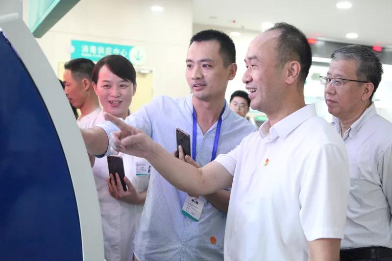 在肿瘤外科住院的市民明先生告诉黄如欣,医院通过就医流程改造、信息化建设等举措,大大方便了就医,让他有了获得感。听到患者的感受,黄如欣一行来到医院门诊大厅,实地体验了一把院内导航、挂号充值自助服务,观摩了智慧药房的运行机制,充分肯定了医院在改善医疗服务上所做的努力。
