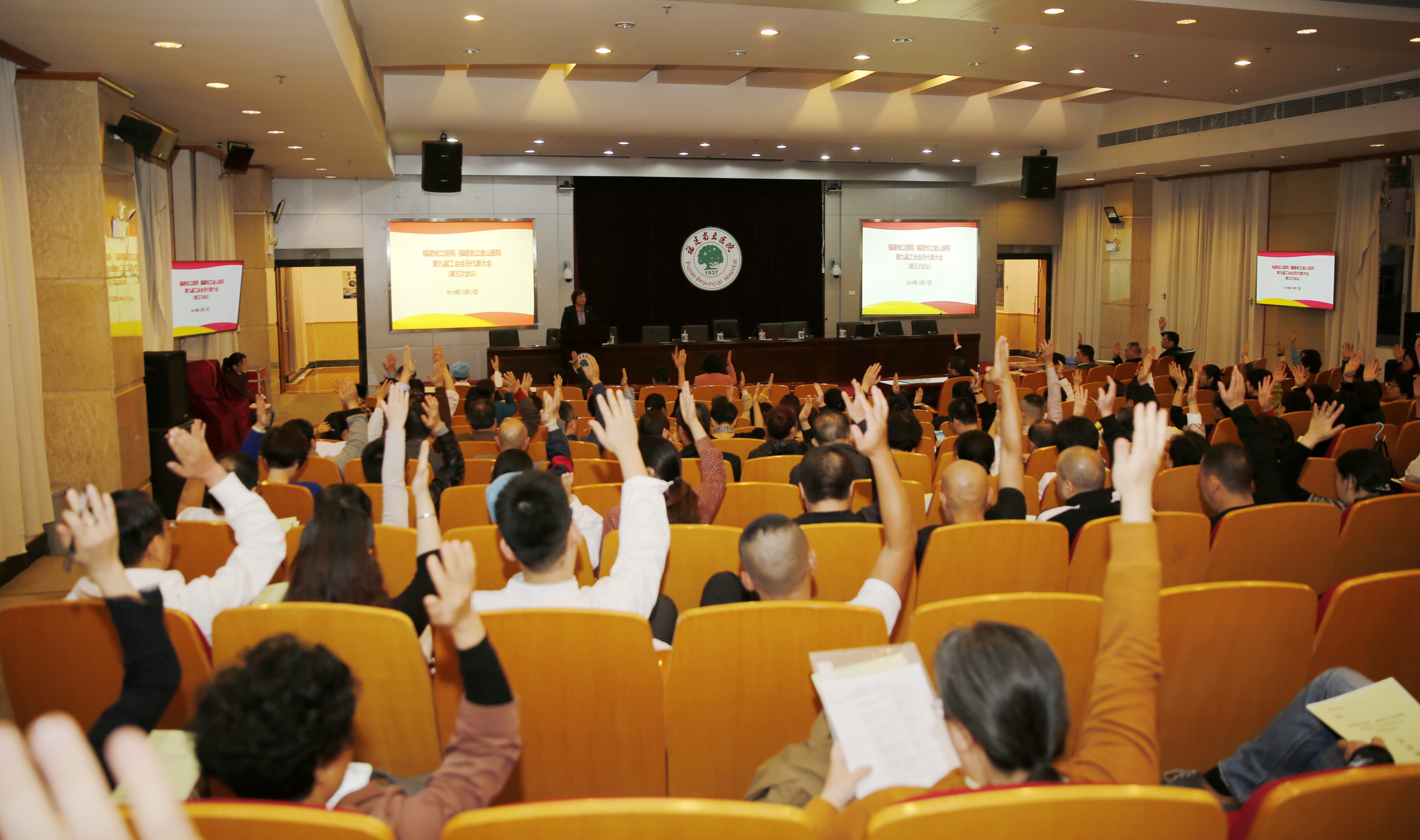 12月17日,福建省立医院、福建省立金山医院第九届工会会员代表大会第五次会议在院国际学术厅举行。会议由院工会副主席赖维洁同志主持,138名委员代表参加会议。院工会副主席张志强同志总结回顾了医院工会2019年的工作。会议同时进行了工会主席届中改选及增补工会委员的选举。省立医院党委副书记、省立金山医院党委书记李红同志当选新一任工会主席,陈晓欢、杨莉同志当选工会委员。