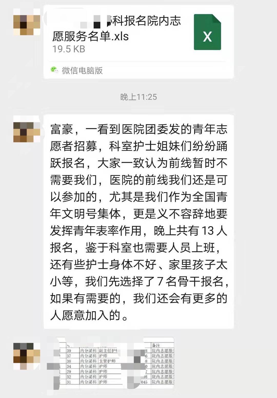 倡议书刚发出,一条条报名信息接踵而至,青年党员、团员发挥先锋模范作用,主动报名,不管是已工作多年经验丰富的副主任医师,还是刚加入省立大家庭不久的年轻护士,不论是否专业对口,大家都志愿投身到这场没有硝烟的战争。