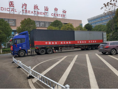12:10,专门接送的车辆已在驻地门口等候。我所在的小组共四个医生,来自于省内不同医院。驻地离金银潭医院车程大概9公里,二十分钟左右可以到达。一路上,接送的师傅不停地感谢我们,我们所到的每个地方,遇到当地的人,不管是服务员、司机、当地医护人员、病患或家属,听到最多的就是感谢。到达金银潭医院时,正好遇上满载各地支援物资的车辆。“一方有难、八方支援”,对于此情此景,这句话诠释的再清晰不过了。