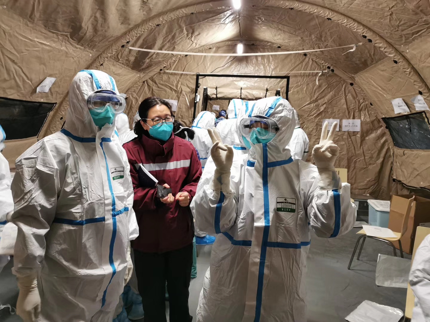 抵达武汉后,团队立即进入位于金银潭大道的武汉客厅方舱医院,准备将接管140张床位的护理工作。她参与床位、保暖用品等基础设施的筹备,同时组织队员们进行业务培训,现场指导进舱前的防护操作以及相关工作细节的规划。
