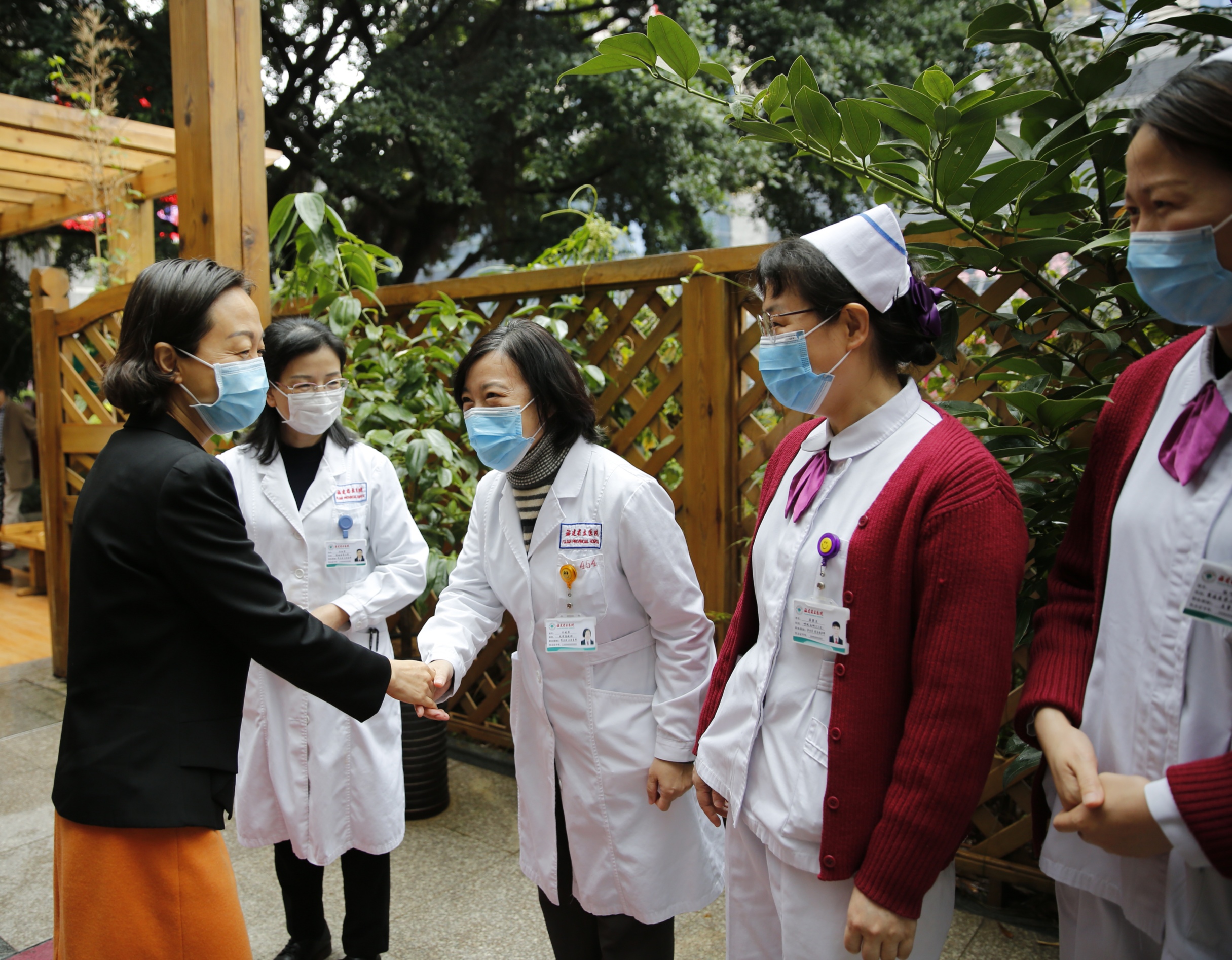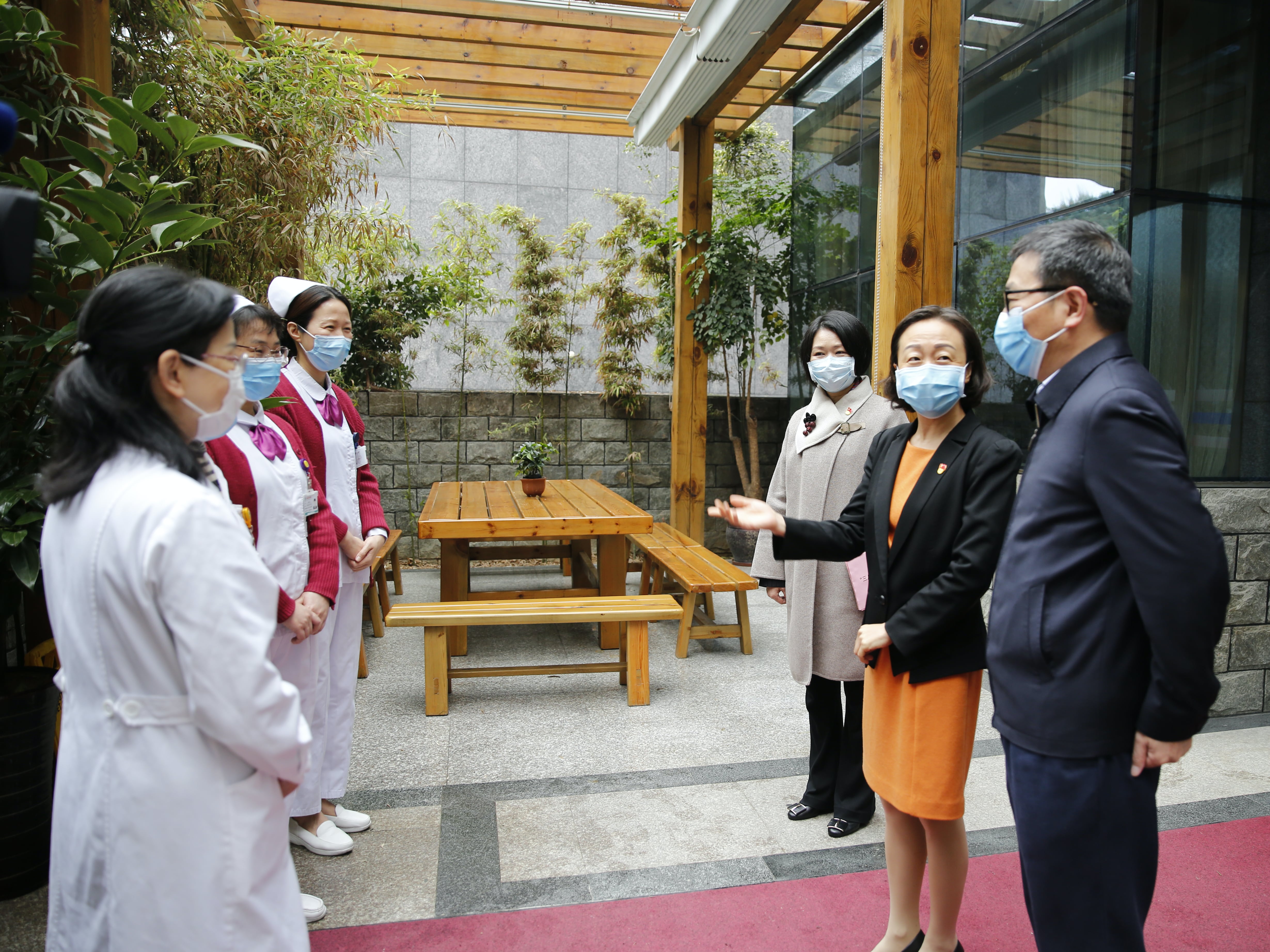 3月8日,在“三八”国际劳动妇女节到来之际,受省委书记于伟国、省长唐登杰委托,副省长、省妇儿工委主任郭宁宁看望慰问奋战在疫情防控第一线的我院女医务工作者代表:重症医学二科主任石松菁、急诊科主任王晓萍、呼吸与危重症医学科护士长易碧兰及隔离病区的护理负责人林巧凤,还登门慰问了第一批支援湖北抗击新冠肺炎疫情医疗队队长林璇主任的家属,我院儿科陈琅主任。