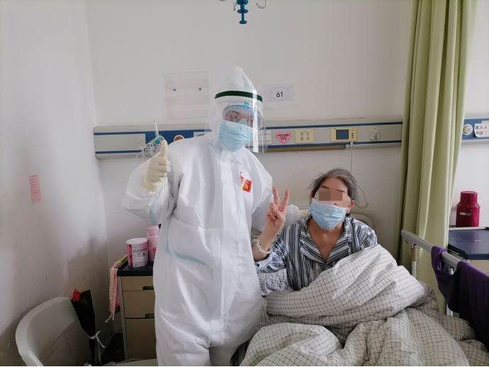 至今仍奋战在金银潭医院的李碧霞在战疫日记里记录下一个令人感动的细节。病区因为没有保洁员,所有的清洁、消毒均由护士负责。一次,她在对病房、外走廊地面进行清洁消毒时,身边一位老爷爷听到她不停的喘气声,说:“姑娘,你歇会吧!你们太辛苦了!你们让我感到非常幸福!”瞬间李碧霞的眼眶红了,“你口中的幸福,就是我想要的幸福”这句话在她的心中涌动。正是许许多多武汉患者的肯定与理解,让队员们更有勇气和信心打赢这场没有硝烟的战斗!