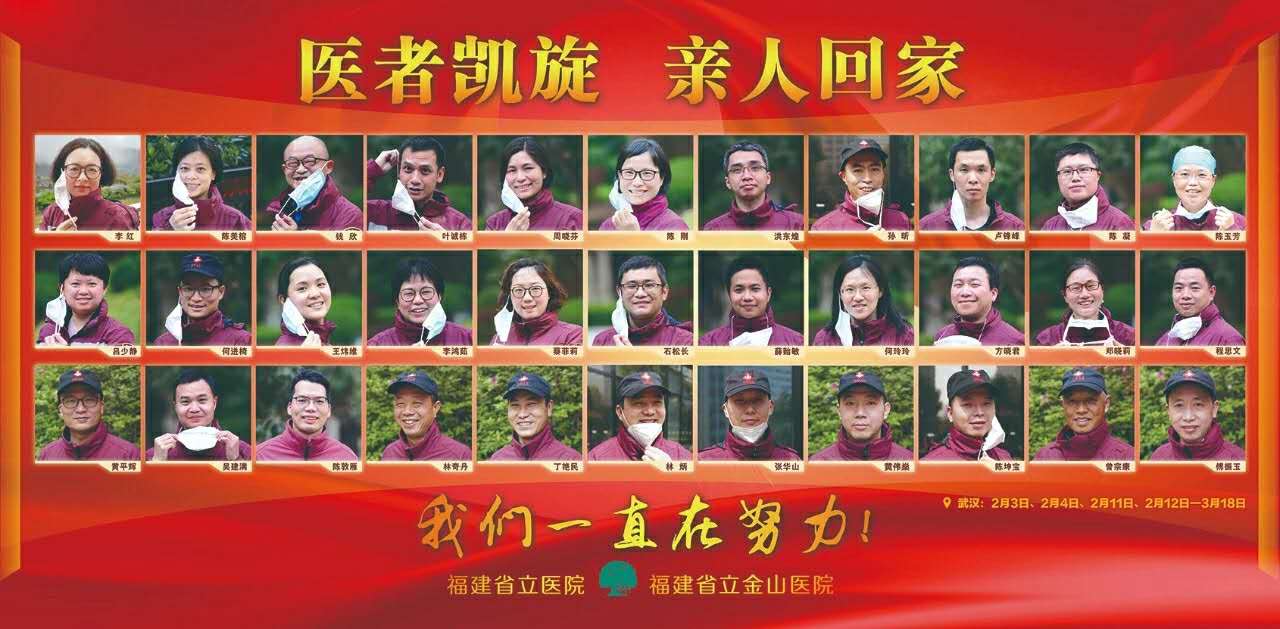 截止目前,我院派出支援武汉的185名“最美逆行者”已全部平安回闽,152人正在接受隔离休整。