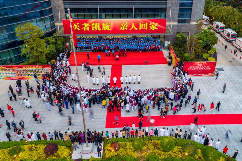“在过去的数十天里,你们不辱使命、不负重托,与时间赛跑,与病毒抗争,用生命呵护生命,用责任守护希望!为打赢武汉保卫战贡献了省立的力量。”党委书记、院长朱鹏立向凯旋的队员致以崇高的敬意,“与大家再次相聚在美丽的喷泉广场,出征时你们铮铮誓言犹然在耳,你们告诉这个世界,爱和希望总是比病毒传播更快。”