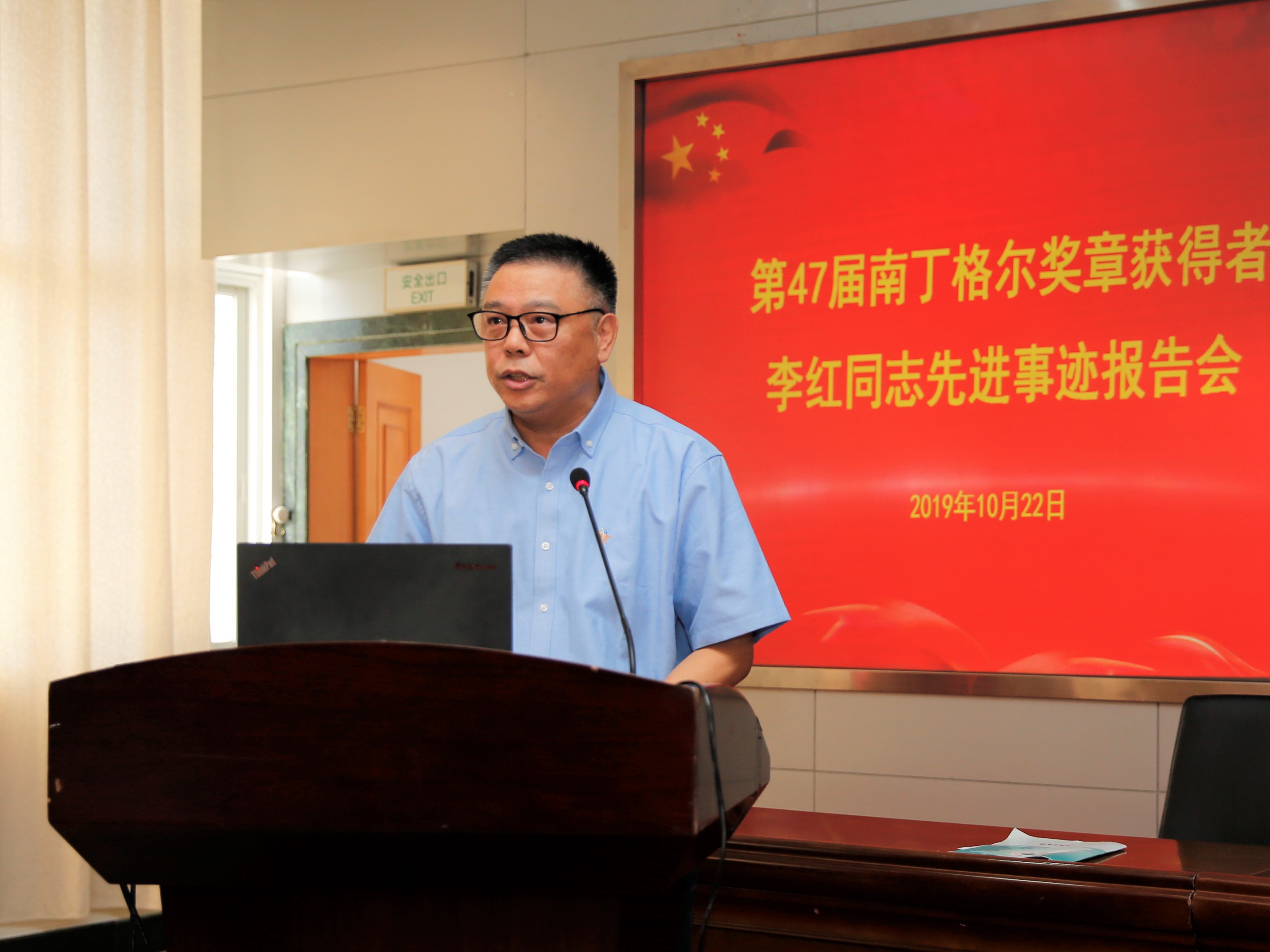 党委书记、院长朱鹏立首先对李红同志获得第47届南丁格尔奖章的殊荣表示热烈的祝贺和崇高的敬意。他指出,李红同志近30年来通过个人的不断努力、不断奋斗,在护理临床、护理教育、护理研究、护理管理等方面倾注了心血,这份荣誉是个人的荣誉、是两院护理同仁的荣誉,更是福建省立医院、福建省立金山医院的荣誉。他号召全体员工向李红教授学习,一是学习李红同志对理想信念的不懈追求。全院员工要在学习中牢固树立正确的世界观、人生观和价值观, 坚定崇高的理想信念;要用实际行动践行健康中国的历史使命,不辜负全民健康的历史重托。二是学习她爱岗敬业的责任担当。牢记全心全意为人民服务的宗旨,自觉将以人民为中心的发展理念根植于心、落实于行。三是学习她无私奉献的职业操守。李红同志时刻关心病人疾苦,处处做“有心人”,用情怀和知识温暖照顾病人,全心全意服务患者,脚踏实地、勤奋工作,为我省乃至我国护理事业作出了重要贡献。全院员工要像她一样,始终怀着对病人的深厚感情,用实际行动彰显敬佑生命、医者仁心的大爱精神。