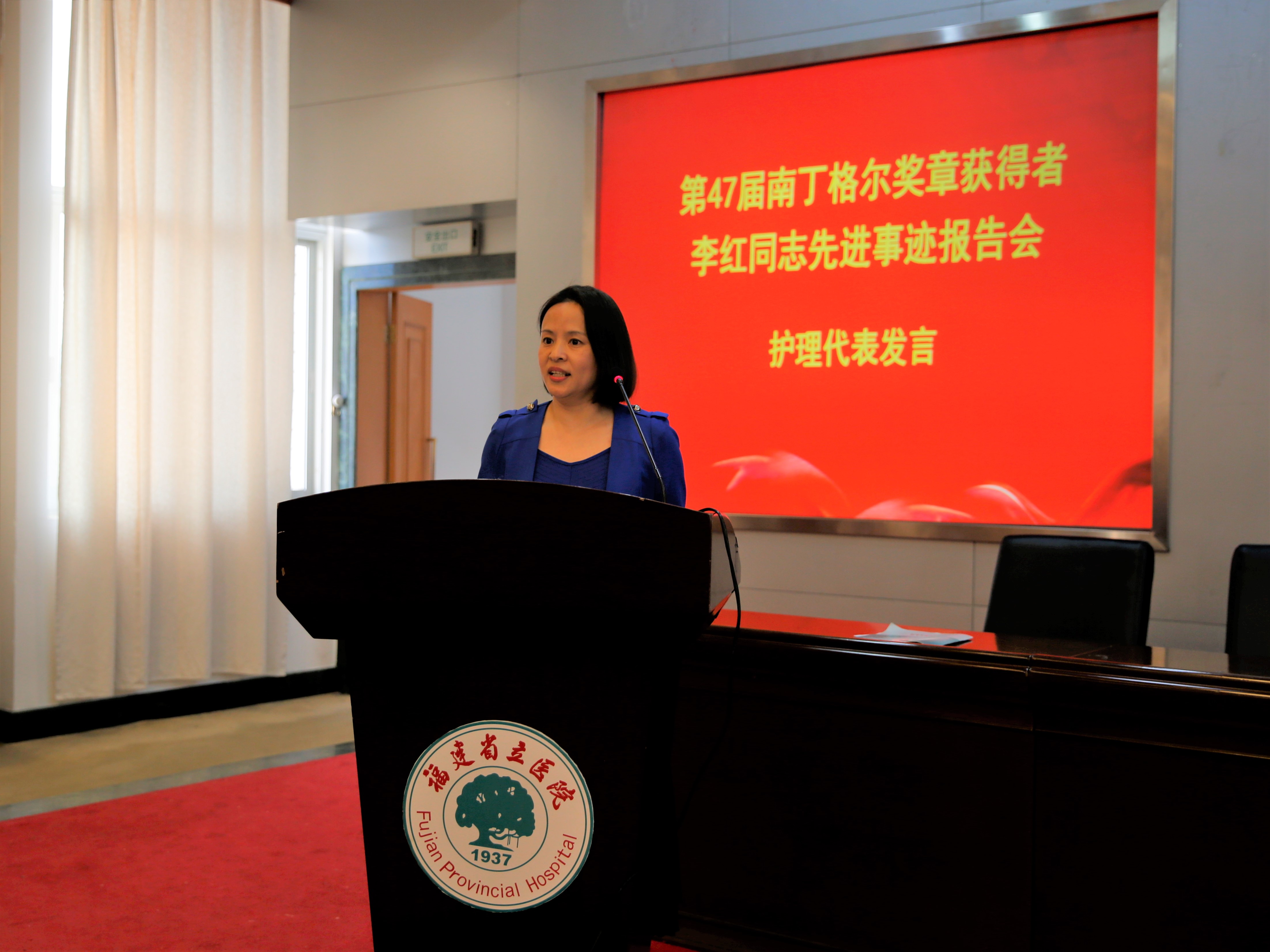 为树立先进典型,传播南丁格尔精神,10月22日下午,福建省立医院、省立金山医院举办学习第47届南丁格尔奖章获得者李红同志先进事迹报告会。全体院领导、两院中层干部三百余人聆听了报告,报告会由陈锋副院长主持。李红同志作题为《精于医术 诚于医德 让南丁格尔精神永放光芒》主题汇报。