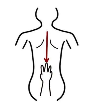 1. 家长用食指、中指、无名指,放于孩子棘突的位置,向尾椎下划,看看脊柱直不直,能否画出一条直线。