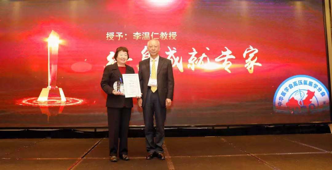 中华医学会在授予其“终身成就专家”时特别指出:是李温仁教授和衷爱高压氧事业的有识之士共同打开了中华医学会的大门,成为了中华医学会大家庭中的一员,为高压氧事业在中国的发展打下了坚实基础。