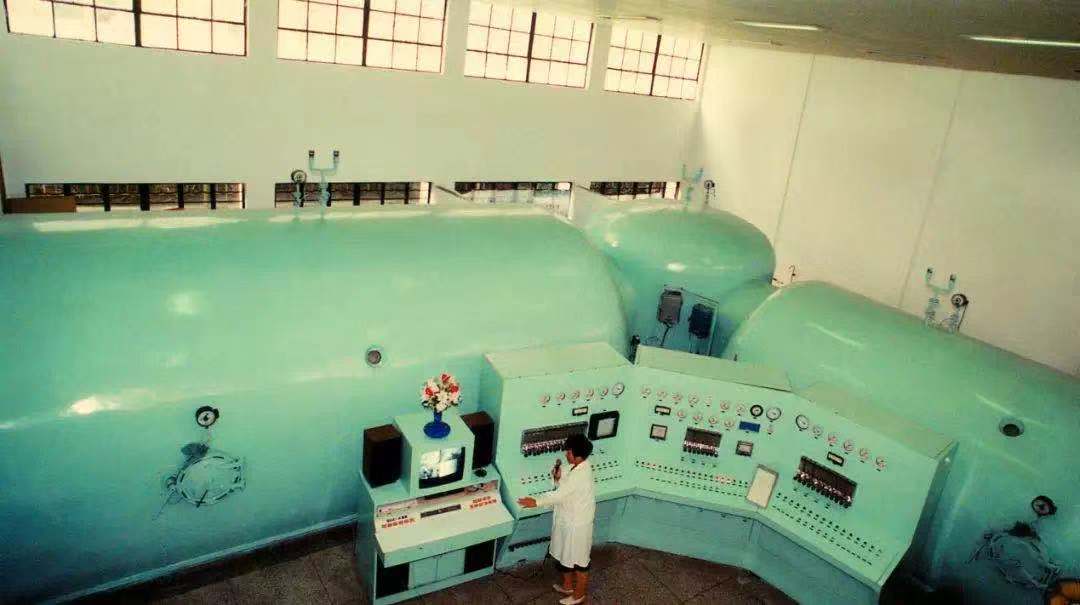 ▲1982年,我院建成的三舱七门式高压氧舱