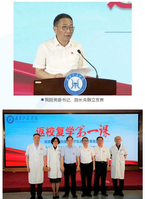 在“返校复学第一课”上,李红、陈锋、钱欣等三位医疗队领队用朴实的语言、真挚的情感,再现了抗疫前线一个个鲜活事例和逆行身影。2020年初,新冠肺炎疫情暴发后,他们先后带领福建省立医院、福建省立金山医院185名医务人员驰援武汉,夜以继日、精心守护,圆满完成了救治任务。