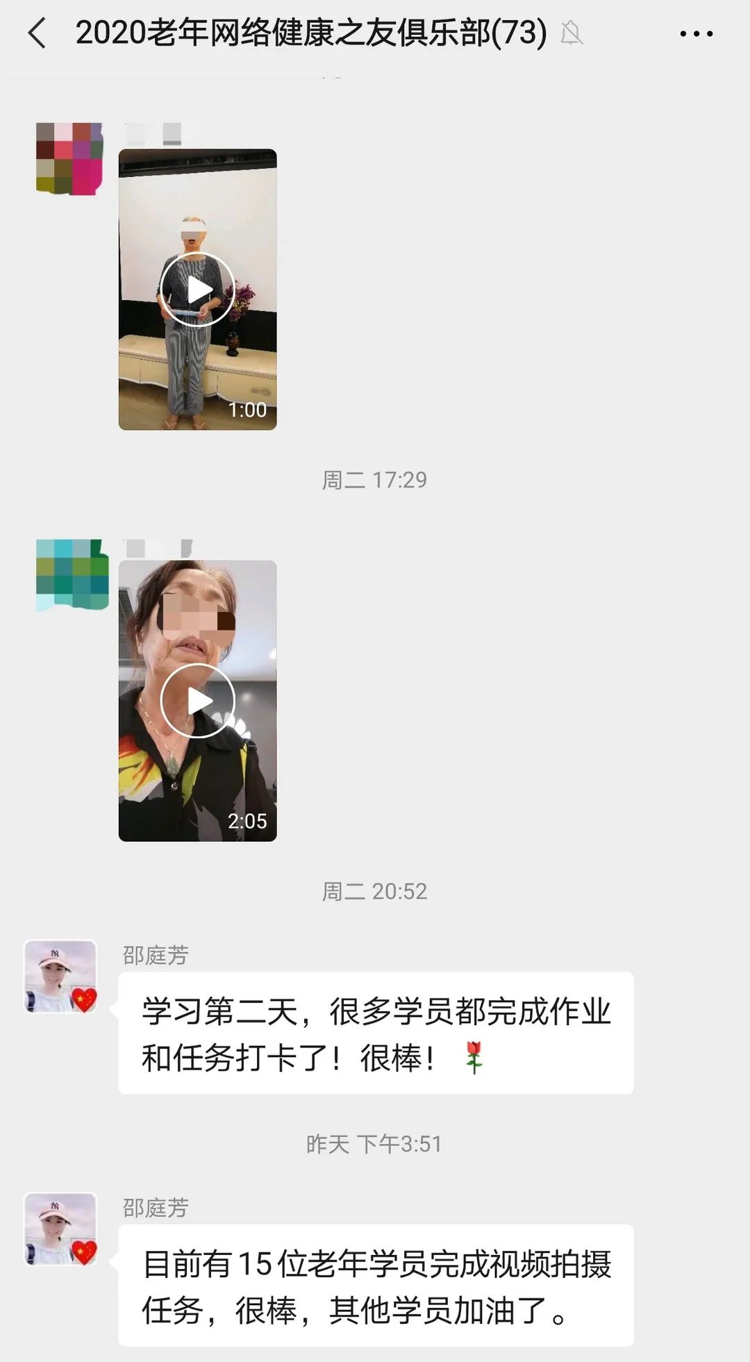 首次课程之后,学员们在群里积极提交视频作业