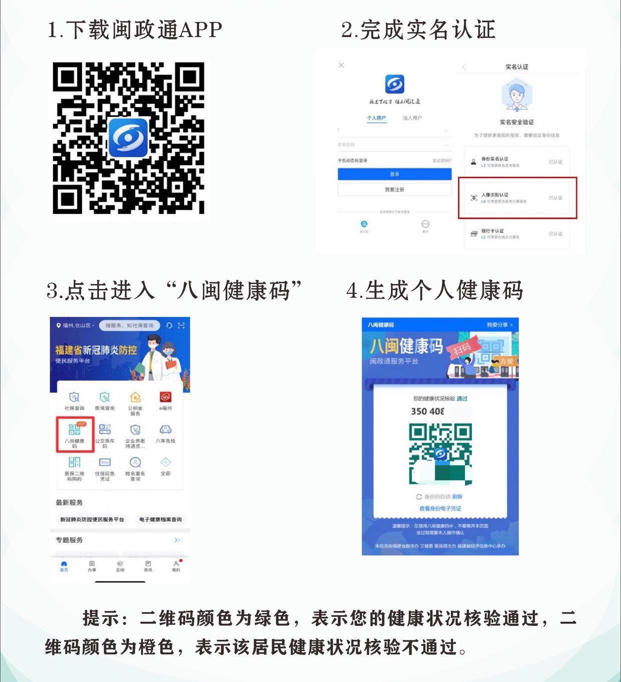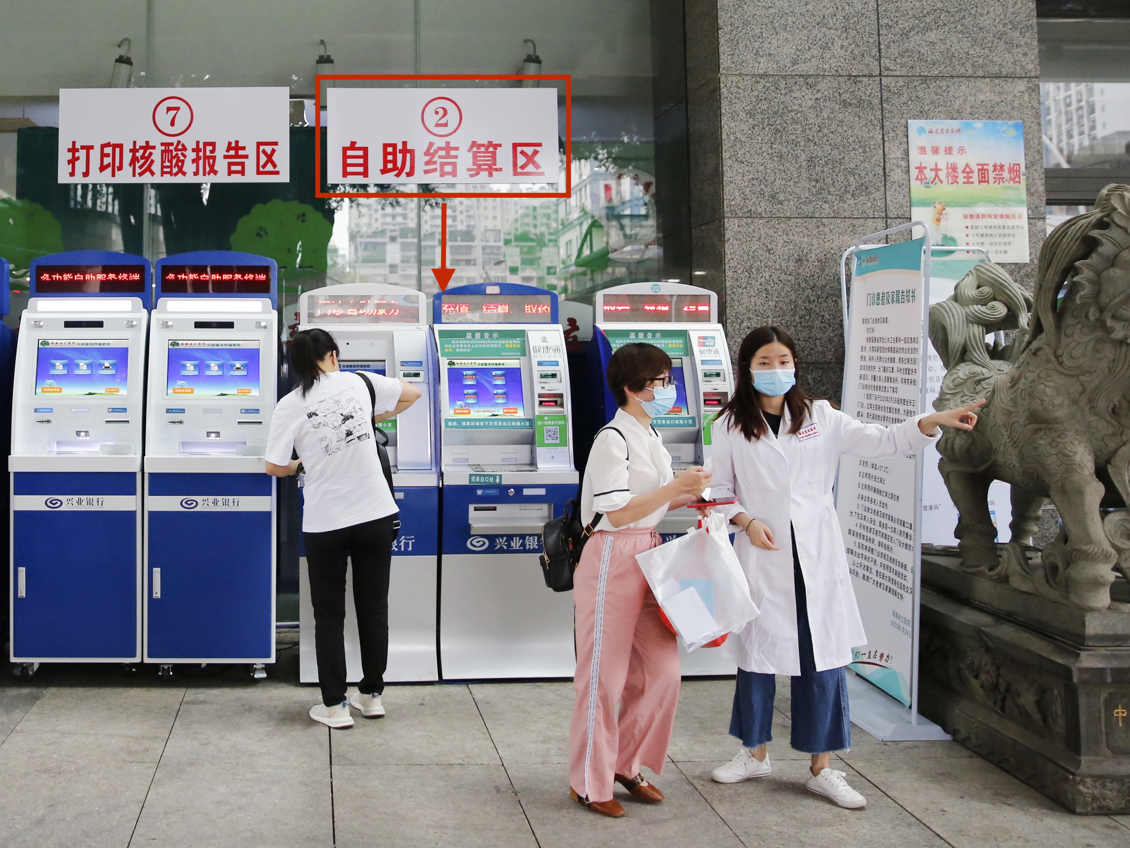 八闽健康码核验非绿色的病友、陪护人员,请从2号楼门诊大厅进入,由预检分诊人员进行核验判断分诊。