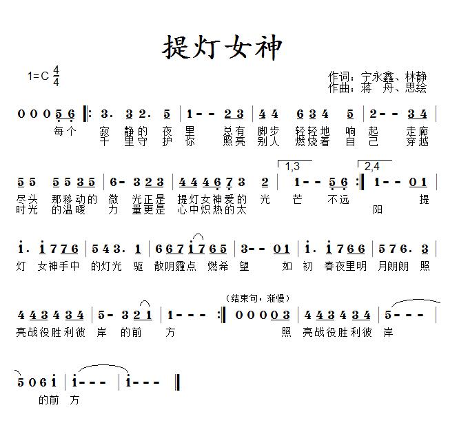 2020年3月23日上午10点,福建首批支援湖北医疗队与武汉市金银潭医院、新华网福建频道,在武汉市金银潭医院联合发布原创歌曲《提灯女神》,用这首暖心的歌曲,向战斗在“抗疫”一线的医务工作者们致敬。该歌曲由福建首批援鄂医疗队临时党委书记宁永鑫,在来自福建省第二人民医院的医疗队队员林静的文案基础上,写出《提灯女神》的歌词,宁永鑫邀请福建知名音乐人蒋舟、思绘作曲,林静与我院神经内科护士蓝钰菱与共同演唱。这首歌曲,讲述了福建首批支援湖北医疗队队员在金银潭医院“战疫”期间的暖心故事。它的创作灵感来源于蓝钰菱重返金银潭医院后的一次夜间巡房,凌晨4点,穿着防护服的蓝钰菱,借着柔和的手电筒灯光,在漆黑的隔离病房中巡视,为了不影响病人休息,她把手电筒的亮度调到最低,轻手轻脚地走进每个病房,一会儿给这个患者盖盖被子,一会儿问问那个患者有没有什么不舒服。同组护士林静看到这样的场景后,特别感动,拍下了这个画面。她说:忽然理解了,为什么在一百多年前的克里米亚战争中,南丁格尔护士会被士兵称为“提灯女神”。